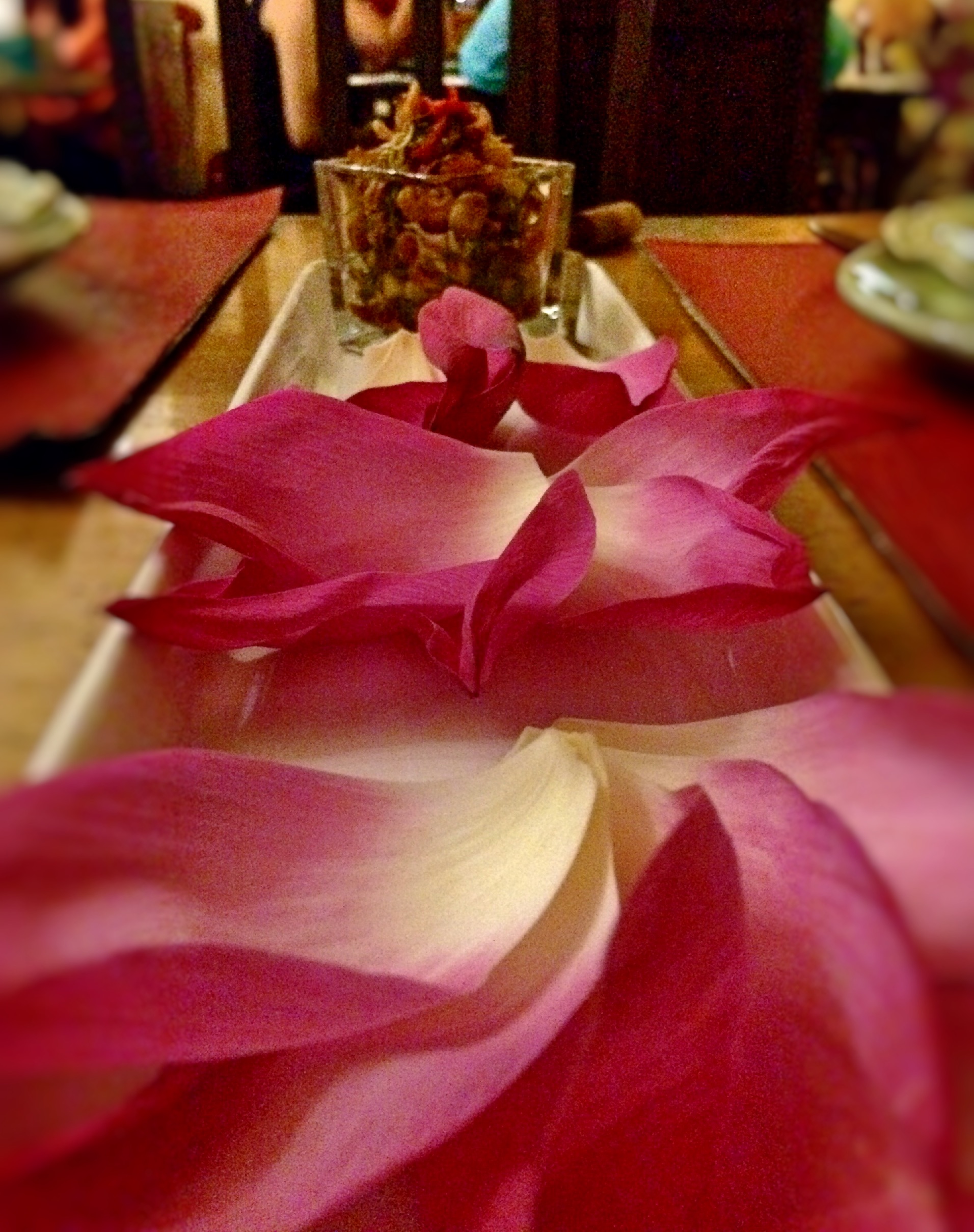 (1) Place 6.5- It was a long time getting there. The tight traffic and curvy bumpy roads made it feel like trying to pull off undersized jeggings stuck around your ankles; just not fast enough. But stepping through the golden carved doors was like being transported into a royal hideout den of secret intimate expectations. Nothing fancy in decor but exciting suspense with foreplayed anticipation having been told of its popularity and reputation ahead of coming. (2) Taste 8.8- Pink petalled cups welcomed us with a delectable starter of surprise. Picking it up in hand, I glimpsed a garden with garlands and bouquets of exotic thrills as I slipped the lotus of love past my eagerly parted lips to consummate with wet waiting tastebuds. The flower and its contents burst into life in my mouth delicately like a bloom of both ecstatic and esthetic spasms that wrecked me for a lifetime of lncomparisons. Another special SPOON mention is the seedless mangosteen salad. My favorite white, sultry and slippery baubles of sweet gooey fruity flesh slid and teased my tongue playfully in the company of the tart savory sour pinch of the salad, inventing a totally new raging spasmodic exploration of climatic culmination that money cannot always buy. Only available seasonally, we were fortunate to experience it’s priceless glory. Everything else after came like an afterglow of sublime satisfaction. Like curling up and cuddling in pillow talk. Not as ecstatic but blissfully and sensually gratifying. Anticipate feeling like the lusty favourite at the King’s secret table. I left weak in the knees and still blushing ☺️ I think I’m in love with Chef Korn. (3) Service 6.5- Kinda felt like it was understaffed what with us pouring the wine ourselves although that made it also quite private and intimate without the hovering service. (4) Value 8.5- I’m sure I cannot find this periodically intense quality or uniqueness anywhere else. So I’m willing to pay for this very affordable royal treasure. You just can’t buy love but this time we were lucky it was for sale. ❤️