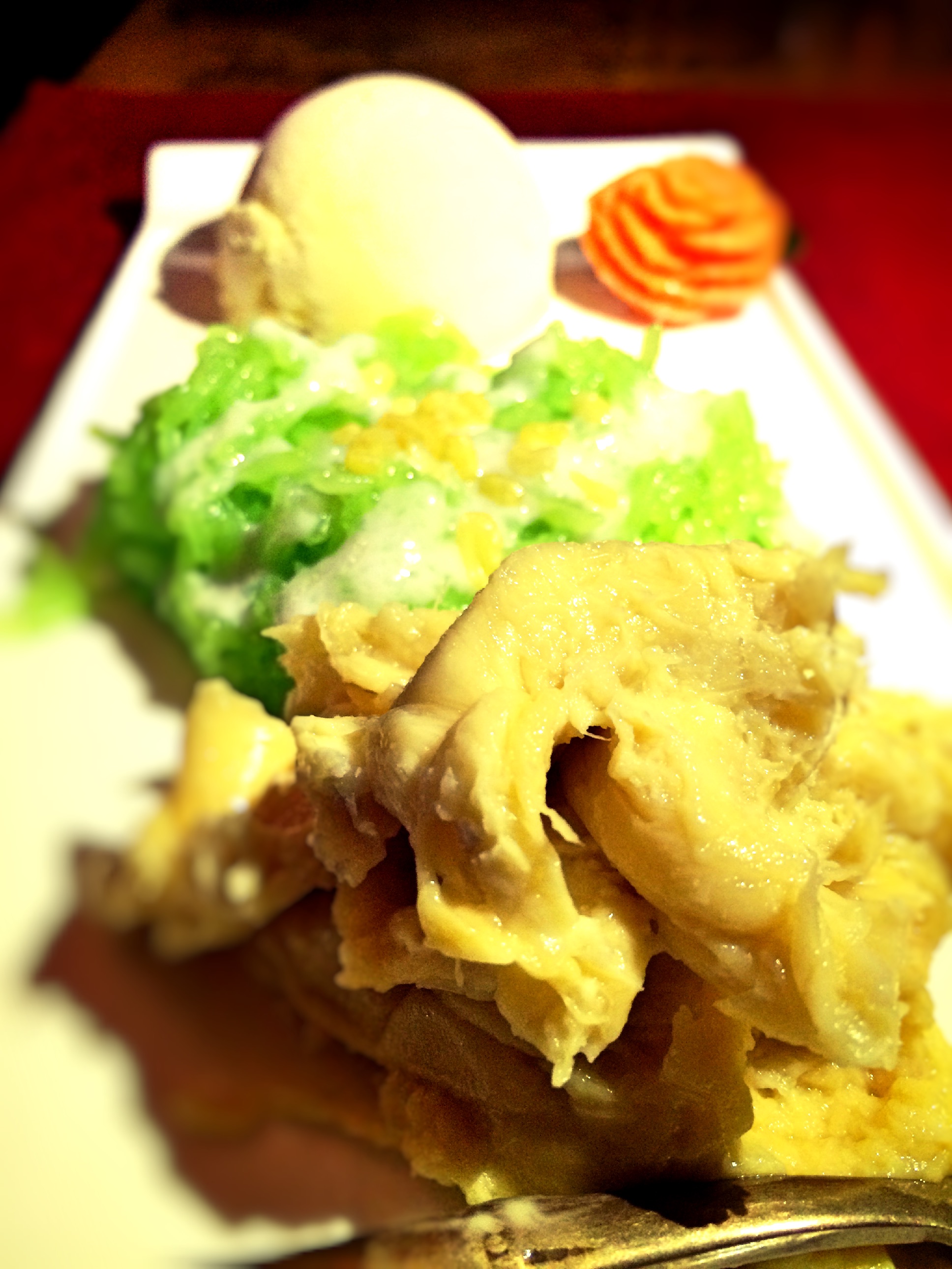 (1) Place 6- Good balance of Thai touches (dinnerware and artifacts) with modern lines (white washed walls and sleek brown wooden panels). Antique brass lighting in a corner and pretty orchids in Chinese porcelain pots adds homeliness. On another wall, numerous framed restaurant achievements and credits hung neatly. Dimly lit, cosy yet casual. Love the adorable brass birdie faucet in the ladies! (2) Taste 7- Interesting array of Thai dishes! It’s no wonder the familiar Tom Yam Soup received no commendations! It was tricky for a non-chili eater like myself this evening. But even so, I made it a point to taste little bits of every dish and the verdict is simple… The chef cleverly combines simple ingredients with elaborate sauces, curries and dressings. Must mentions.. the Mangosteen salad.. Boy was that fiery! But at the same time, the seedless mangosteen flesh was plump, sweet and juicy! This seasonal item left a burning sensation on my lips, but I’m glad I got to savor its wonderful contrasting flavors. The Pomelo Salad was a hands-down winner for me! Chunky pieces of juicy Thai pomelo combined with crabmeat, prawns, shallots, cilantro and doused with roasted ground peanuts. The accompanying sweet tangy sauce brought another layer to the overall taste but optional for me as I liked the natural sweetness of every ingredient in the salad. Another outrageous (-ly good) dish was the Cockles curry. The shelled cockles were SUPER fresh and SUPER fat. Cooked in a mildly spicy red curry to perfect doneness. Even though it was spicy, I braved multiple spoonfuls with rice then followed by water! In another non-spicy dish, every piece of squid was generously coated with creamy salted egg yoke sauce which wasn’t so salty, you can eat it on its own! Very tender and succulent. The simple stir fried Sunflower Stems with garlic looked ordinary enough to pass up but it was, in reality outstandingly flavorful! And what the heck are sunflower stems anyway!? Never had them but think I’ll be looking out for these precious shoots everywhere! Dessert was unquestionably the perfect climax! The Durian Platter consisting fresh local durian pulp, durian ice cream and glutinous rice was magnificent! The salty rice with the bitter sweet durian pulp plus cold ice cream… Well.. let’s say 3 persons to one portion will be a thing of the past😀! (3) Service 6- Service was decent. Dishes were served at orderly intervals. The friendly owner patiently explained the complexity of the dishes, origins of the seasonal ingredients. Thereafter, the Chef came out to meet us and he was a sweetheart! Modest and passionate about his culinary skills! Nice work, Chef! (4) Value 5.5- Rm200/head. Certainly a little expensive based on the following: ⊗no drinks! ⊗portions were small! ⊗in Malaysia!? ⊗Mostly low cost ingredients (albeit well executed!) Ideally, for the same meal, I’d pay RM140 and would be happier if I had been able to try a few more non-spicy dishes 🙂