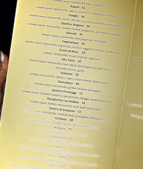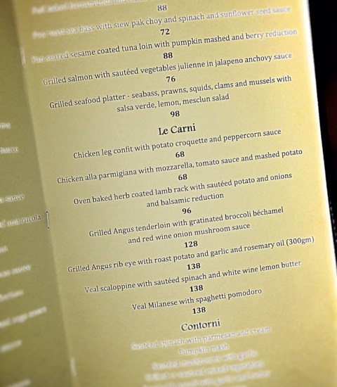 Tatto boasts a good, wide range of appetizers and mains, from pizzas to pastas to meats and seafood. We had a split pizza of Smoked Salmon and Margherita; a Seafood Aglio Olio and the Pan Roast Sea Bass.