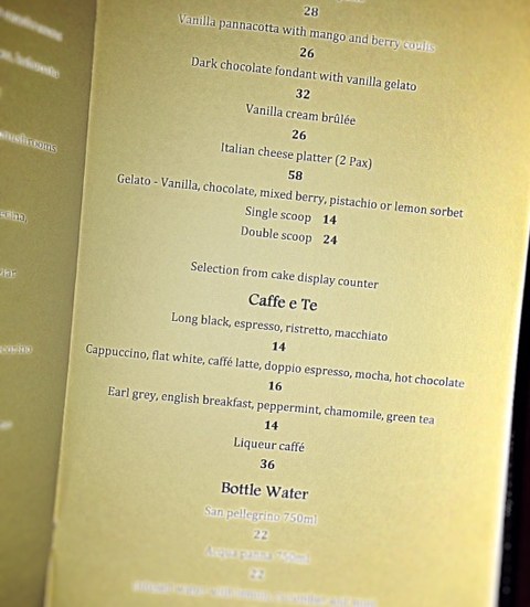 Get seated up front and you might just miss the display chiller filled with the most decadent looking cakes round the other end of the bar. These cakes are all freshly made in-house. And though none of them scream Italian, trust me, you have to try one…or two?! Man, I couldn’t take my eyes of them and couldn’t wait til dessert time! We ordered 2 cakes and a Panna Cotta to share and secretly wished we had room for more!