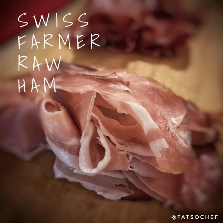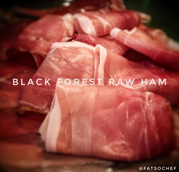 My never-fail Black Forest Raw Ham is a beautiful salty cured meat. Just a thin strip of fat, barely oily, yet so moist and so tender. It’s is dry cured, air dried and naturally wood smoked to perfection. This pork leg meat goes on everything wonderfully… bread, salads, and of course, on its own.