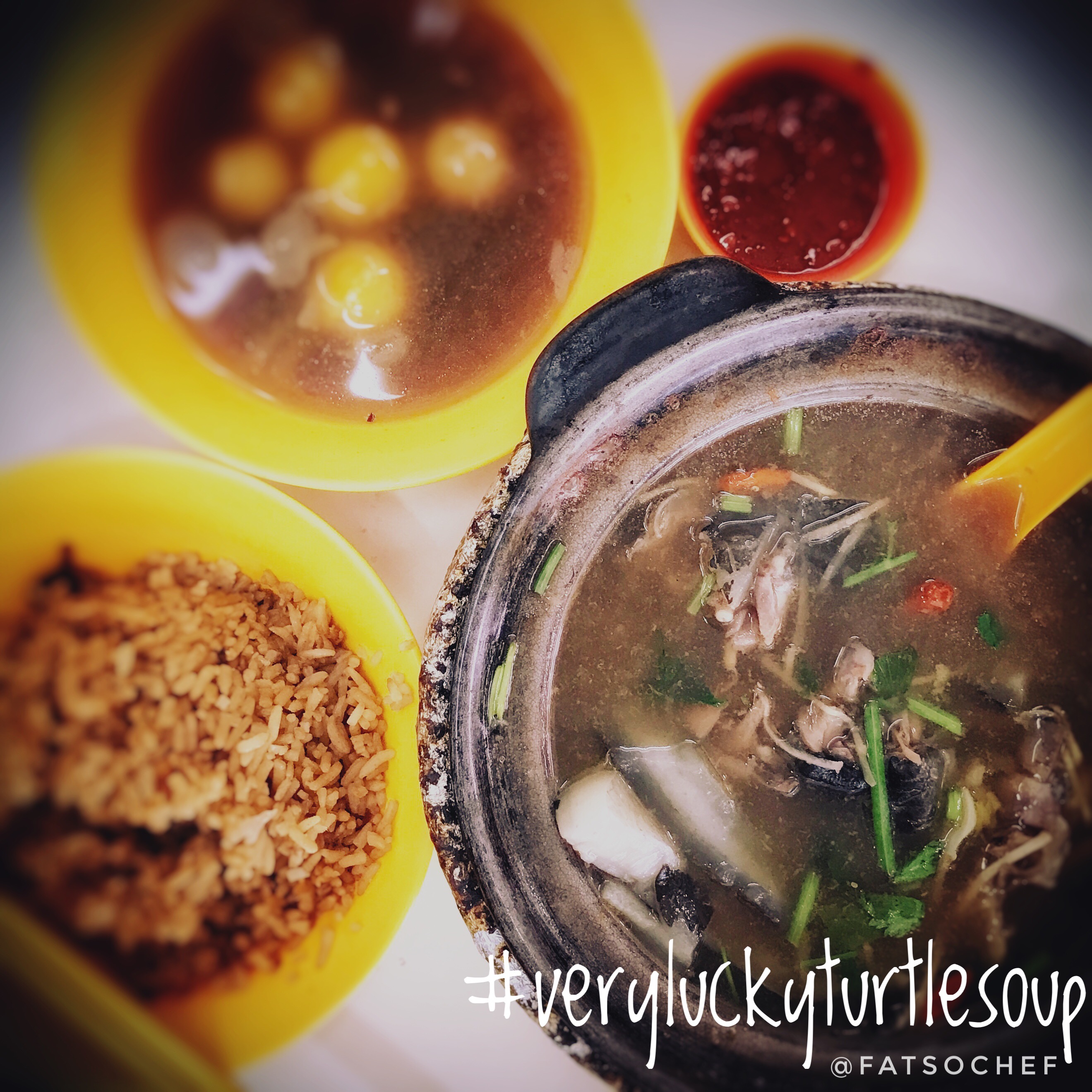Located within a small food center that’s cursed by the harsh heat and humidity βοΈ of Singapore’s weather… If there’s anything to keep you going, it would be this Turtle elixir bestowing ninja strength and immunity in every sip! Still sweating like a pig but persevering between mouthfuls of thick juicy turtle meat and delicious soup, we discussed plans in ordering this awesome delicacy to go on our next visit!