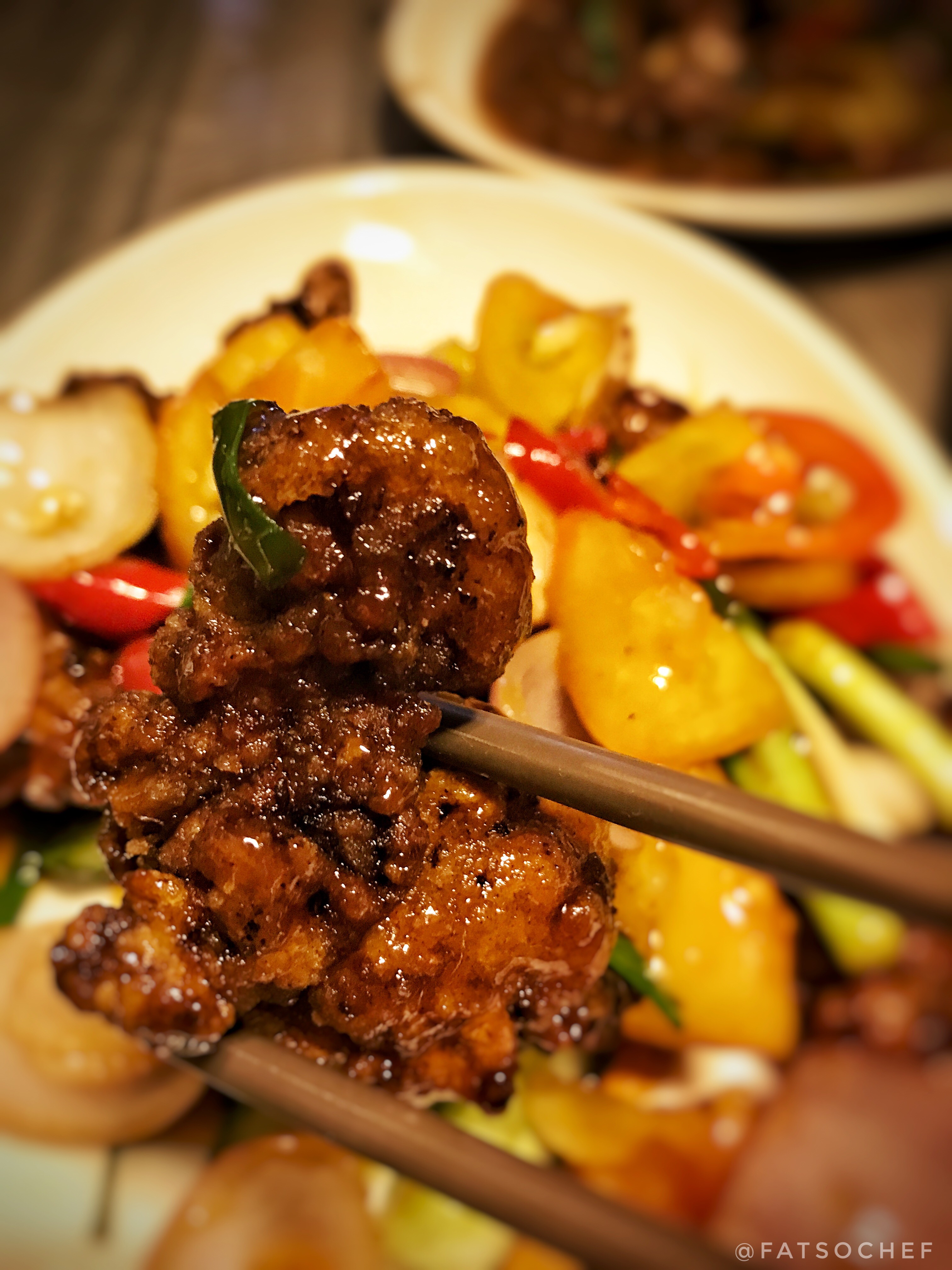 Sweet & Pork Sour- the international Chinese dish after fried rice! EVERYBODY makes this… it’s really not so hard either.. but what stood out with Eat First’s is their use of lean pork loin instead of a fatty cut like in most other places. The fat-less loin remains tender and soft coupled with a super crispy exterior. They’re accompanied generously by crunchy bell peppers, onions and cucumbers. The sweet-sour tomato based sauce is perfectly measured, unlike many cloyingly sweet versions that’s all sugar and starch.