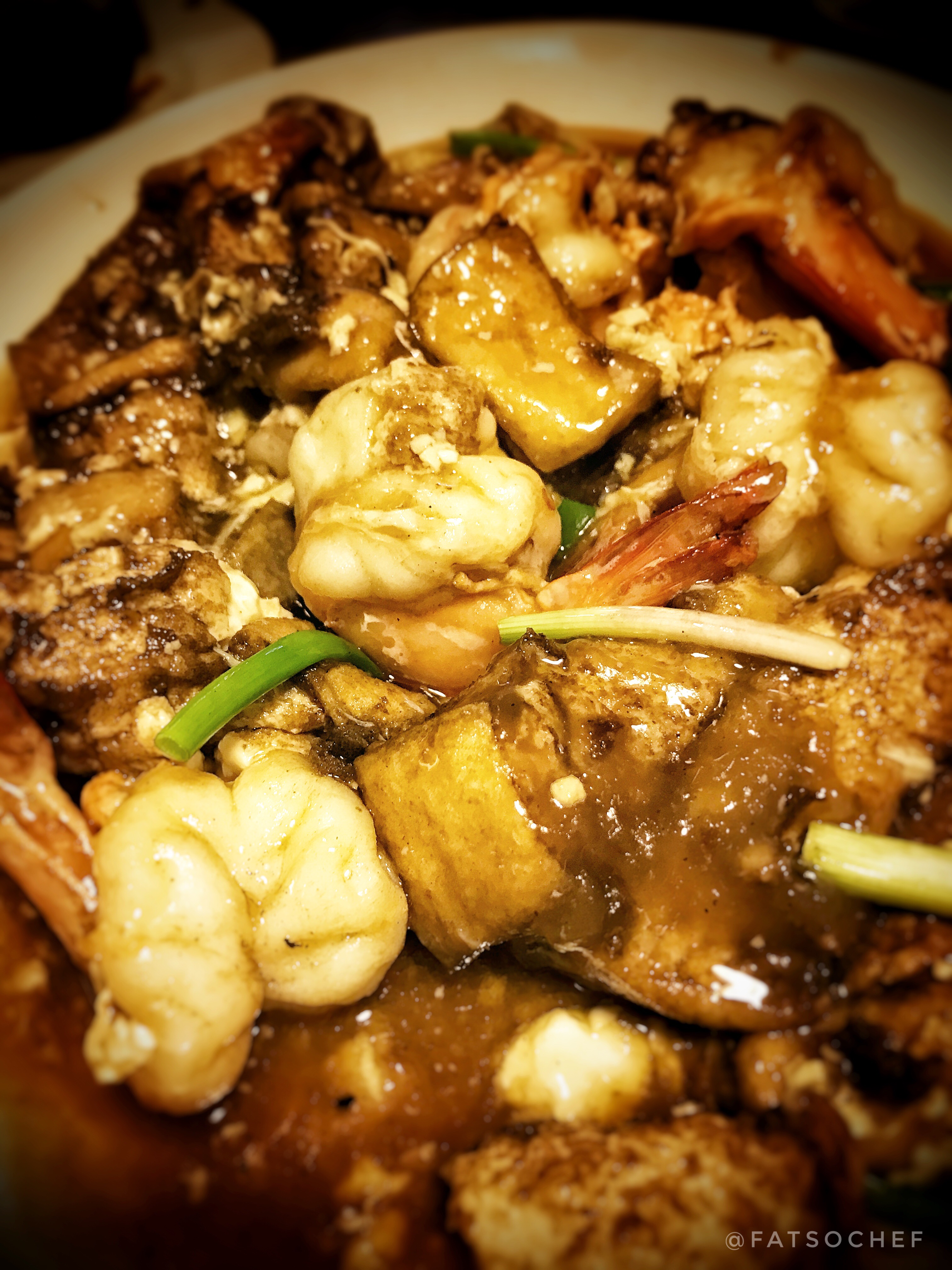 Our last dish, a giant portion of Bean Curd with Prawns! Love the charred skin of the soft tofu, giving it a smokey flavor. The prawns were jumbo! Huge, firm and juicy! Braised in a lovely sticky brown sauce that penetrates deep into both bean curd and prawns! A perfect meal on its own with some plain rice!