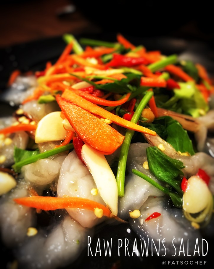 🥗 Raw Prawn Salad – Another Thai dish we love. The medium sized prawns were cleaned very well. Tasted fresh and firm. The marinade was delicious! Not overly spicy while not compromising on lime juice and fish sauce. I love the generous amount of fresh garlic and veggies thrown in.. gives every mouthful a refreshing crunch and a little garlicky kick.