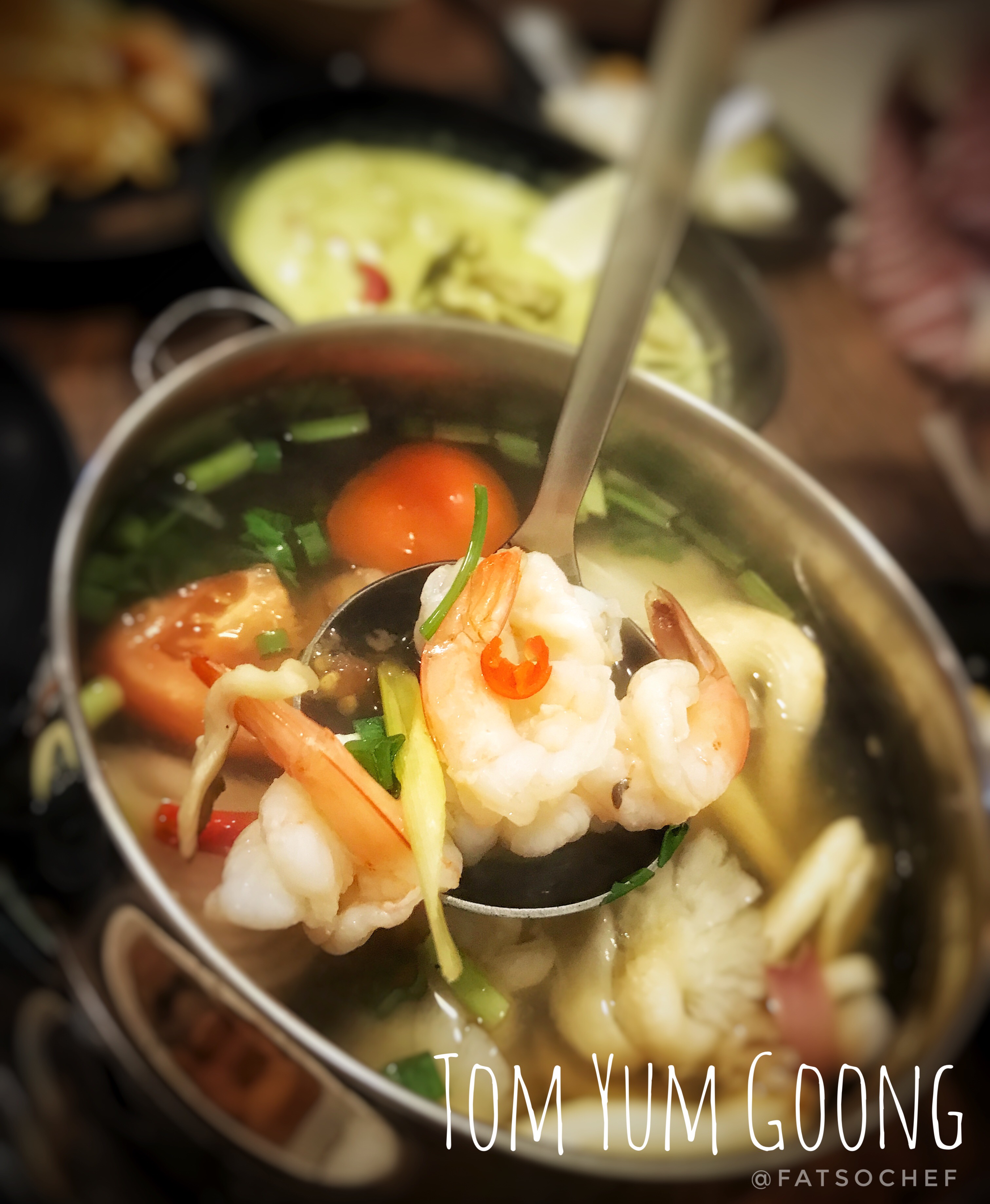 🍤Tom Yum Goong- can’t do Thai without the mandatory Tom Yum Goong. You could order this clear or creamy (made with milk). Our clear version hadn’t a hint of spiciness in aesthetics but packed a punch! Loaded with many medium sized prawns in a pot that serves 4 comfortably.
