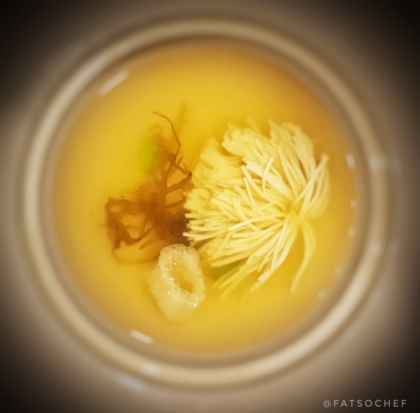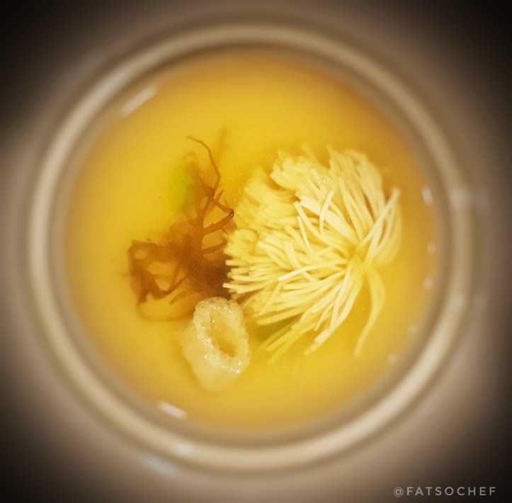 The Japanese Kunbu Broth with Hand Carved Tofu is perfect for the light eater. A clear soup to warm the tummy. I’ve seen truly exquisite tofu carving… and Joie’s was certainly a good attempt!