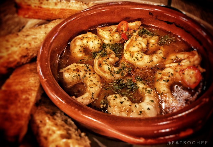 Gambas Al Ajillo (Garlic Prawns) – Another classic! Nicely done, a very aromatic garlicky oil flavors the fresh, firm prawns. If only the prawns had been slightly bigger!