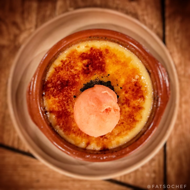 Crema Catalana Con Sorbete (Creme Brûlée with Sorbet)- Nope! Never had Creme Brûlée with Sorbet! But this worked pretty nicely! A little crunch with a little cream and a little frozen chill!