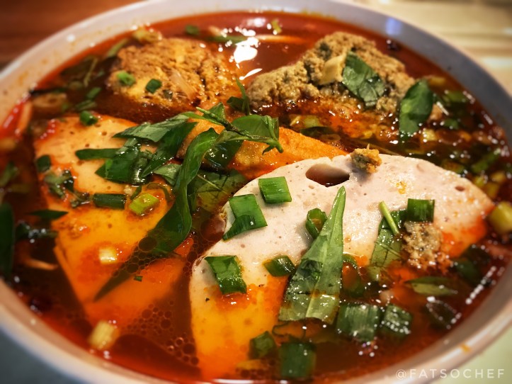 And when you’ve done all the classic Phos, and seek for something different, try the Bún Riêu, a sweet sour noodle soup with homemade meatballs. Don’t be looking for balls though! The meatballs are technically chunky minced meat patties… each bite unleashes a mild spiced flavor as the textured meat melts away in your mouth. This soup is cooked with tomatoes for that tinge of tartness. Its very light and very appetizing. Definitely a good option if you’re tied of the usual Phos.