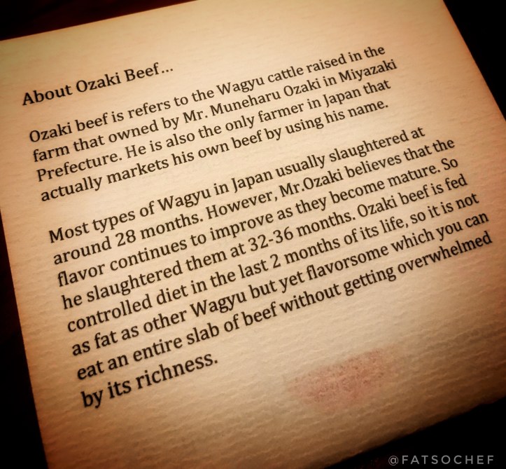 Today’s blog is about the Ozaki Wagyu, served exclusively at Ushidoki. The way Ozaki cattle is reared, makes the meat significantly less fatty than most Wagyu; A quality that certainly sits well with me.