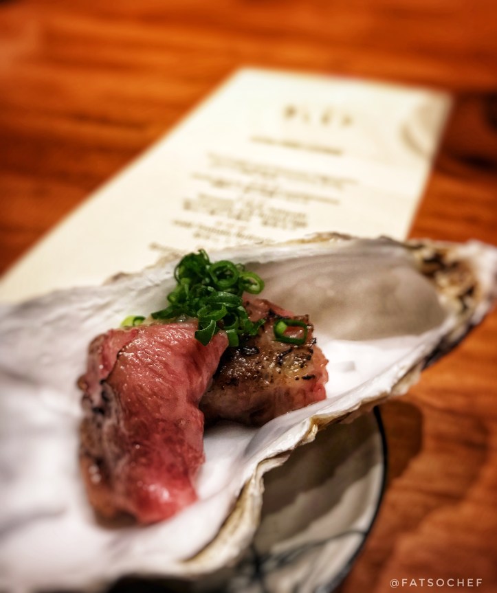 A plump oyster wrapped in beef. The inner beef shoulder cut was pleasantly tender while the oyster was a mouthful of salty juiciness!