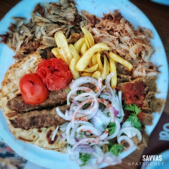 The Savvas Platter was a mix of 4 different meats,. You’re right, it looks rather ordinary here… but, the shaved pork, beef and chicken were all absolutely fantastic. Smokey, juicy and tender, and perfectly charred at all the right places. The veal kebab was succulent to the core! It was big on herbs and spice in every bite, but not overpowering.