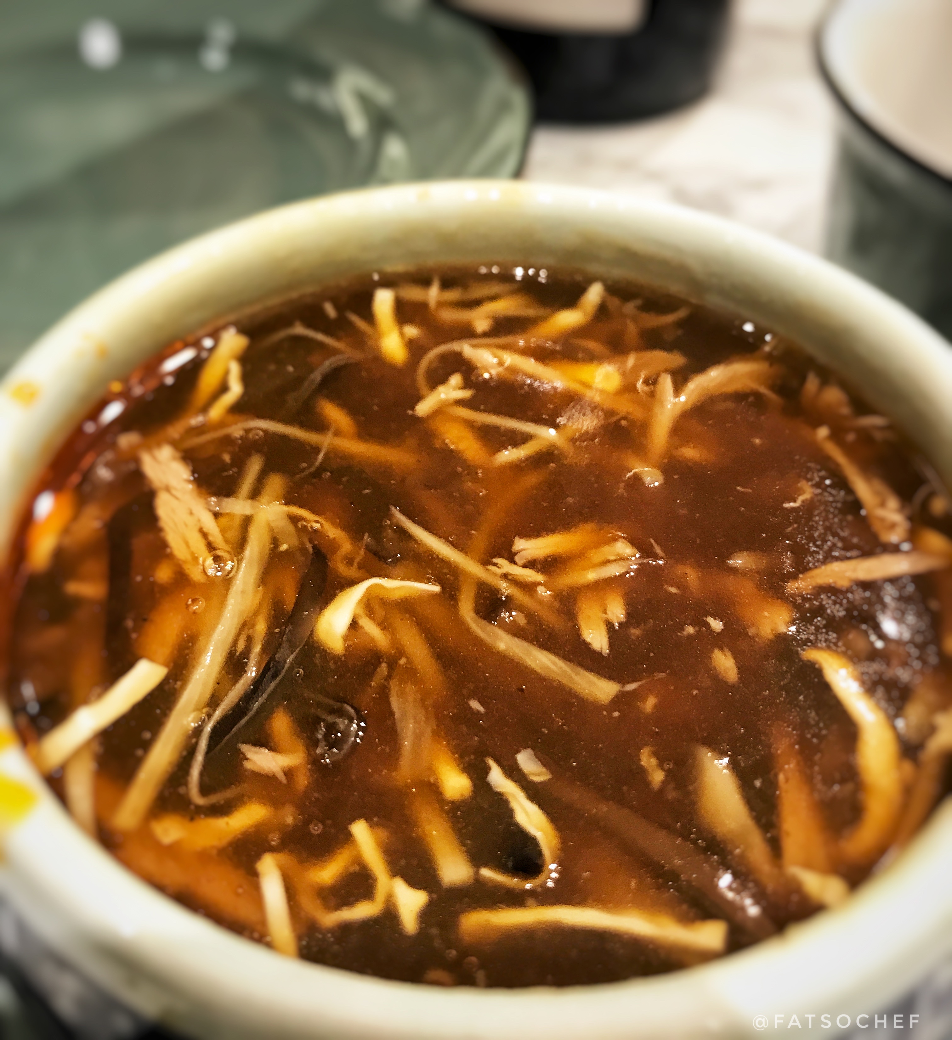 Szechuan Hot and Sour Soup with Shredded Duck Meat– It looked like any other Szechuan soup, almost too ordinary, and at first taste, even felt slightly lacking in both hot and sour. Before you reach out for that pepper and vinegar, have another spoonful and allow the flavor set in. It isn’t one of those sour spicy soup that hits you like a truck your face. It comes gently and gradually as you roll the thick broth in your mouth. Don’t be expecting something hardcore that gets your nose runny and sniffy. This was perfectly balanced, the hot and the sour, so you could enjoy, not suffer! All bowls were dry and everyone glad they didn’t try to ‘improve’ it.