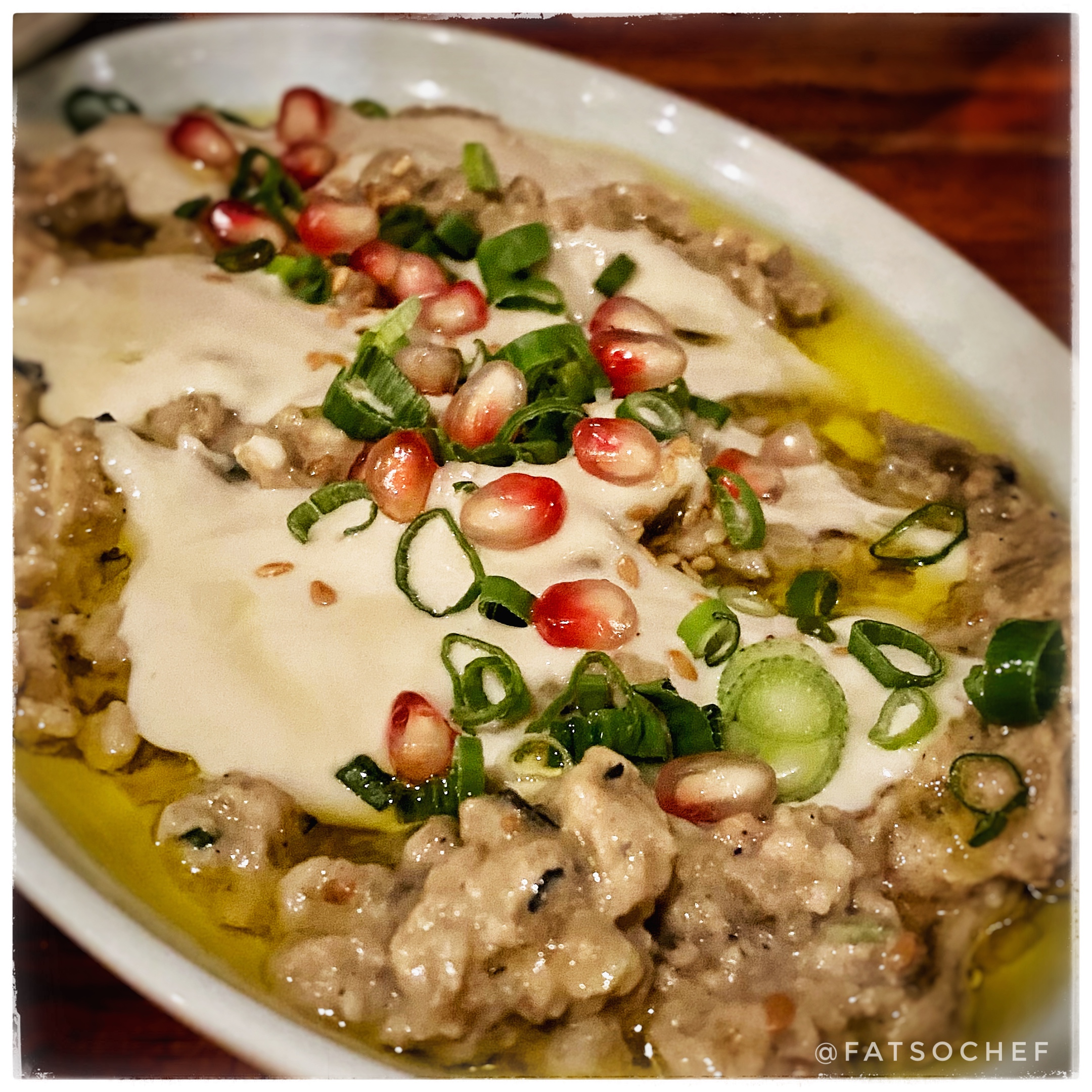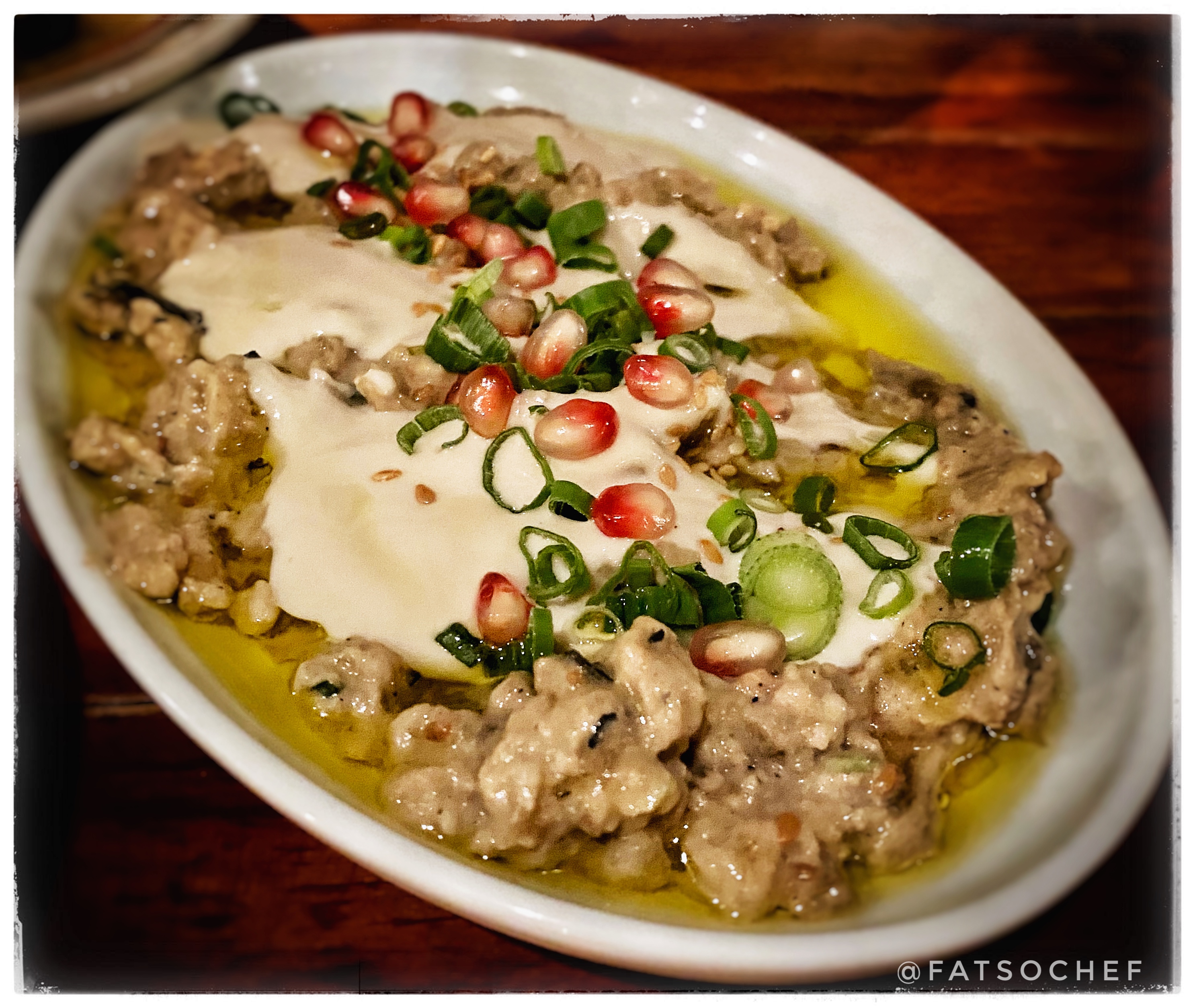 The Babaganoush eggplant will be like no other you’ve tasted. Mashed and drenched in nutty sesame paste topped with sweet pomegranate. Be wowed by the contrasting flavors and textures of soft aubergine against crunchy pomegranate, chivey scallions, earthy sesame paste and aromatic olive oil!