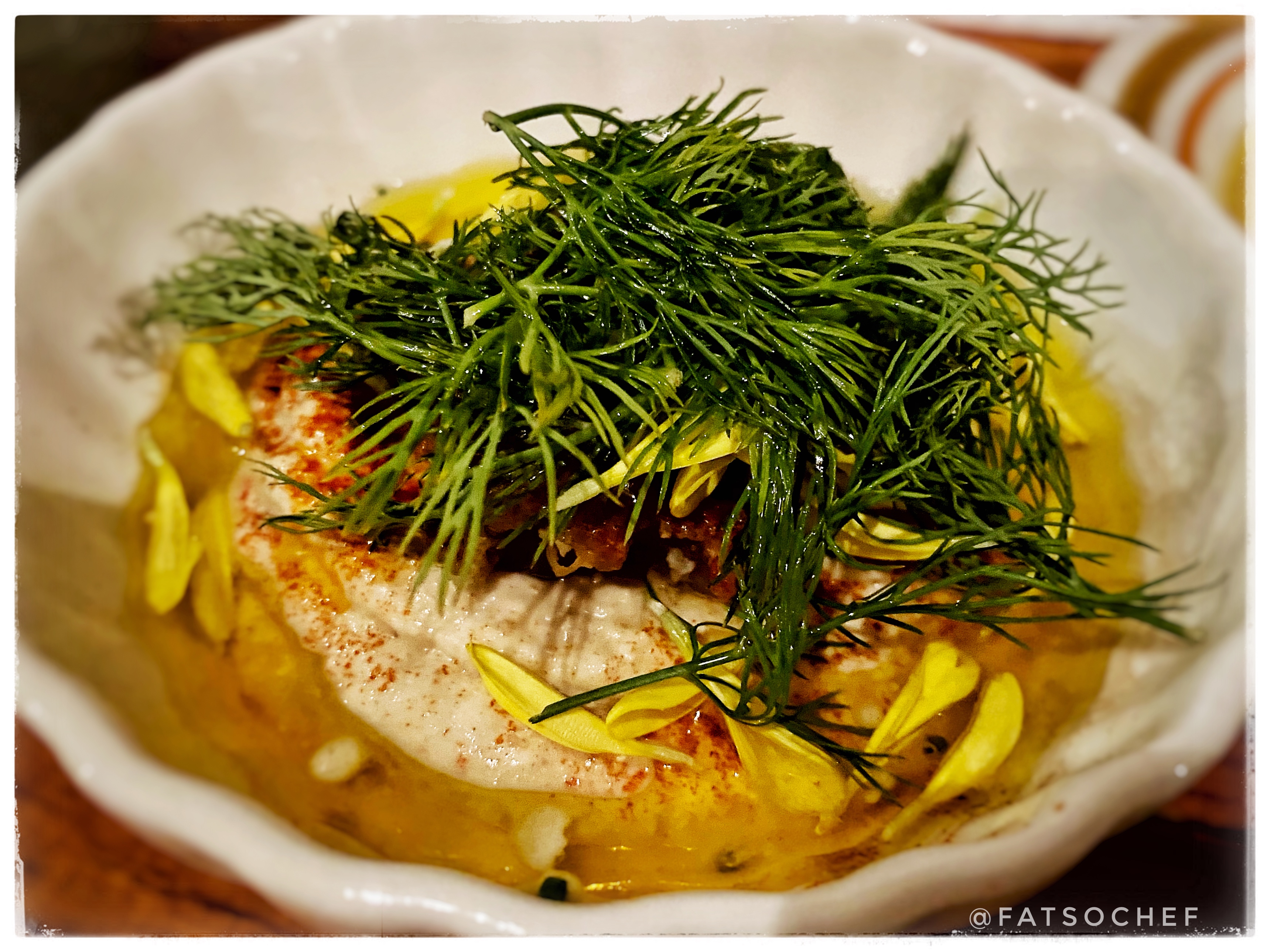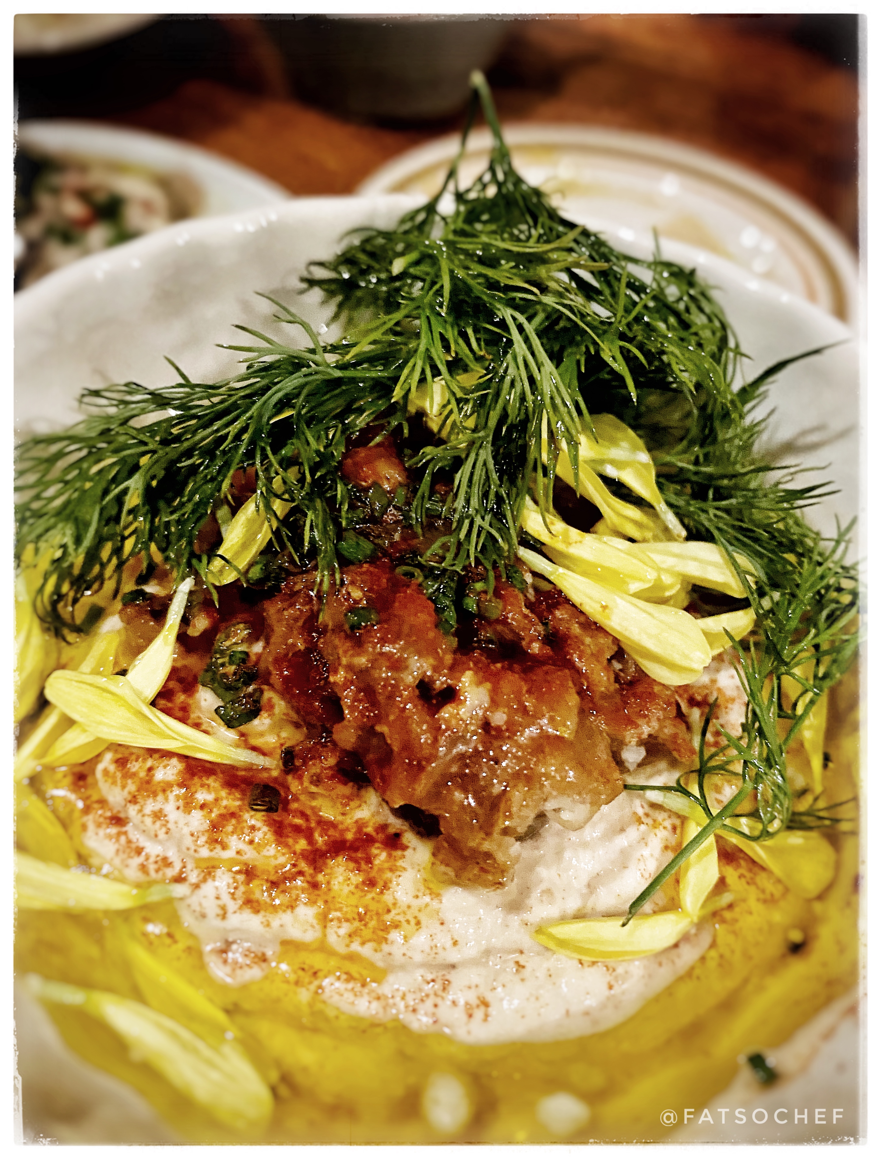 The restaurant has a Chef’s Tasting Menu which features many of their house specialties. That’s probably a good option if you don’t wanna study the menu too much! You’ll start with some of the most amazing dips and they come with some lovely warm bread.