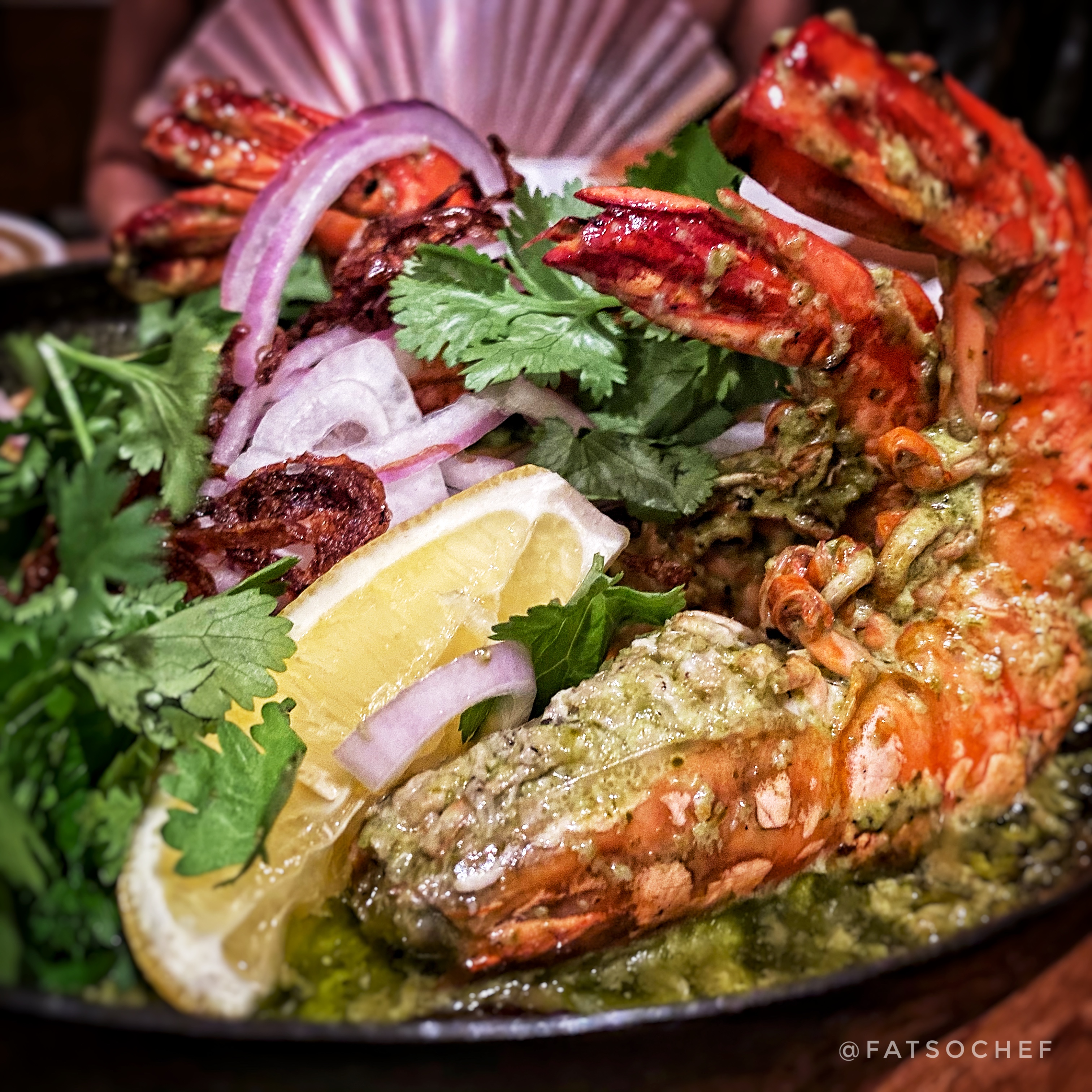 Roasted Cauliflower Mandi– I don’t fancy cauliflower too much unless they’re roasted. So imagine my delight when this gigantic flower bud appeared roasted gorgeously golden and smelling heavenly of tart yogurt and toasty nuts! Surrounding the big brown tender cauliflower was a moat of fragrant long grained rice mixed with sweet pomegranate. Plus a mildly spicy sauce that’s put there to make you eat more!! No carbs? Not tonight!!