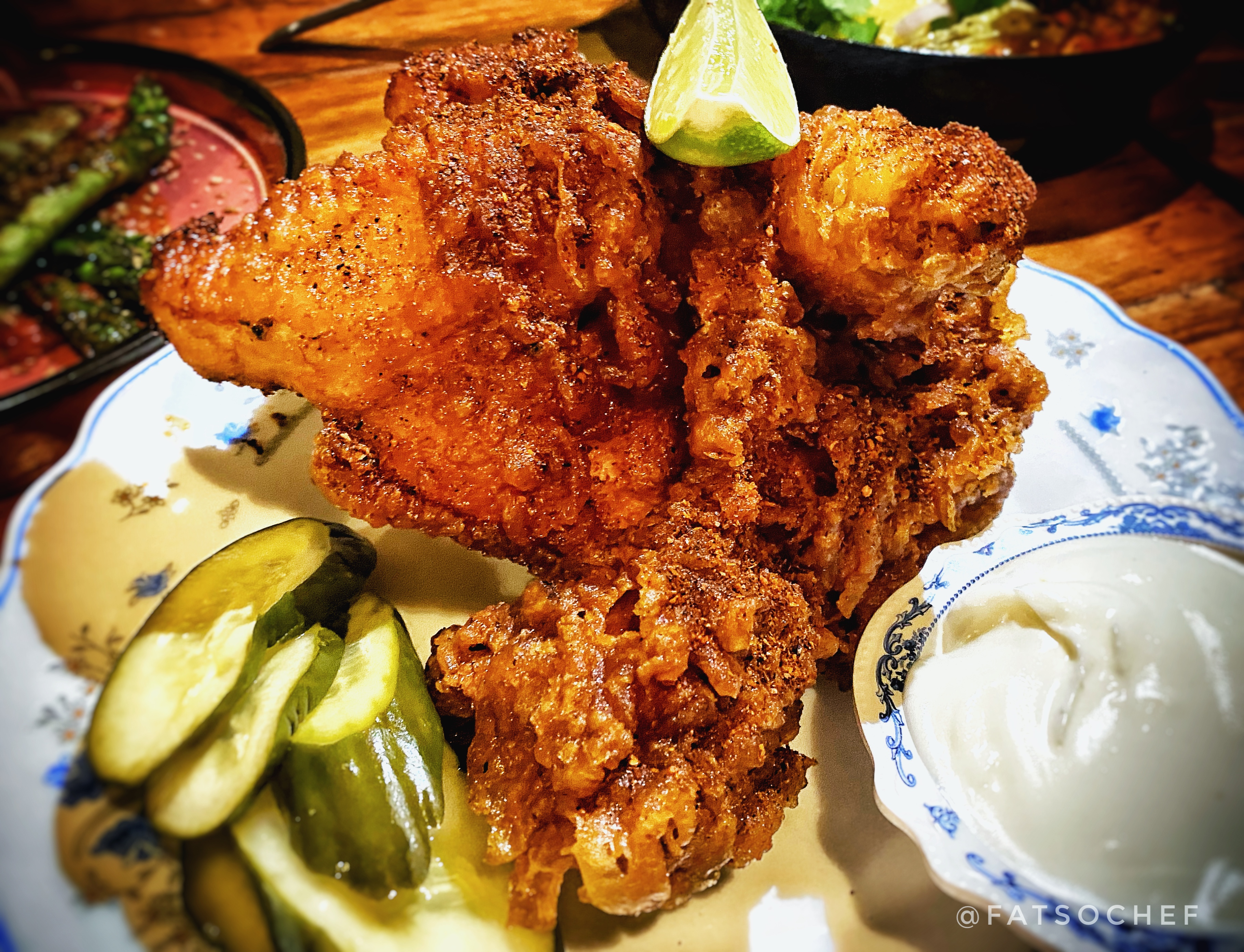 I’d not normally order Hash Browns. I mean, Hash Browns? Just shouts McDonald’s for me! But since it came with the tasting menu…. (shrug>>) This would be my first Hash Brown in a loooong time! Here we go… They formed some mashed potato into a brick. Fried the little fella and served it with a large dollop of sour cream and spices. Crisp like a chip on the outside and fluffy like cotton on the inside. The piping hot spud and cold sour cream were criminally delicious together! Let’s put it this way…, I will never look at Hash Browns the same again!!
