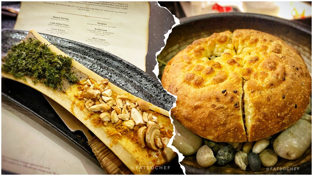 Nomads Nan– This is the one item on the menu you gotta watch yourself with. I know, it’s just bread, and butter, technically. But really.., they’re really not just bread and butter. The bread is warm, thick, fluffy and smells of aromatic oils and grains. It is bloody good! We were advised to save a little butter for another dish but, it didn’t happen…though we really tried. It was pretty phenomenal, that butter, both of them! Expect no marrow despite being served in the hollow of a marrow bone! Infused instead with herbs and seaweed and spices and nuts, this is literally the best butter I’ve had ever! Incredible shit! *We did find out after, that the marrow had been exhumed for another dish.