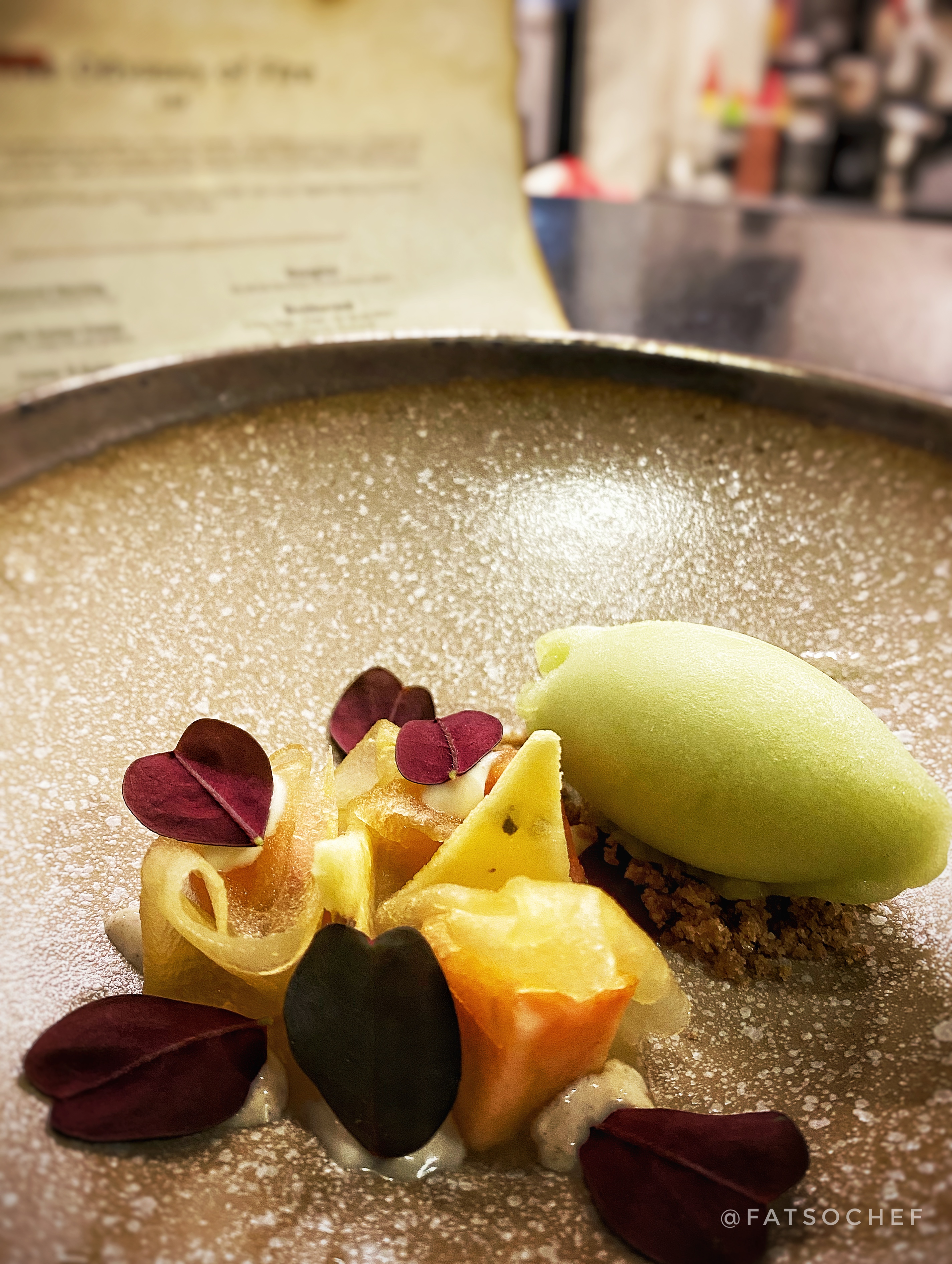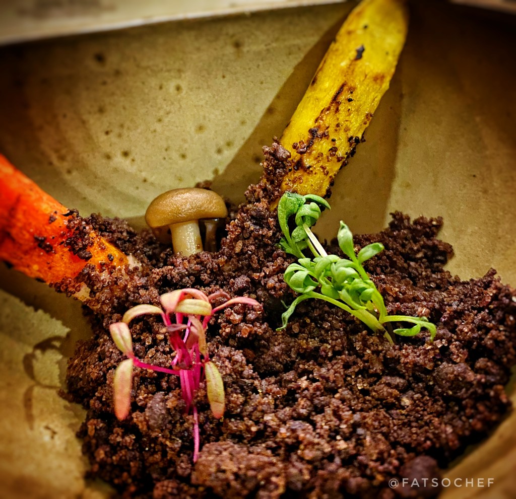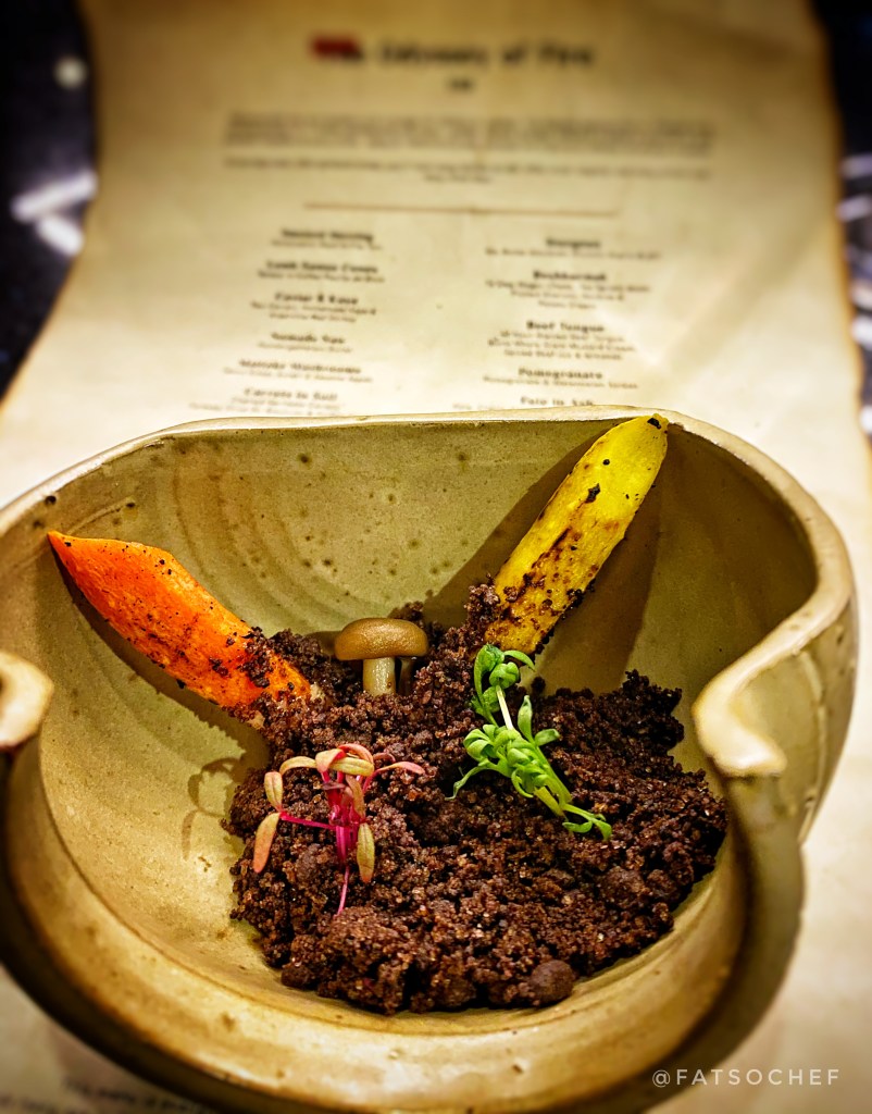 Carrots in Soil– Then an unsuspecting star arrived; in the form of vegetable root and soil! Before you roll your eyes at the humble root and gimmicky soil disguised food, just know I would obligingly take this off your hands if we were dining together! Without giving too much away, this is one dish I absolutely loved. Could seem a little un-fittingly sweet in the middle of the meal but so damn good all is forgiven!