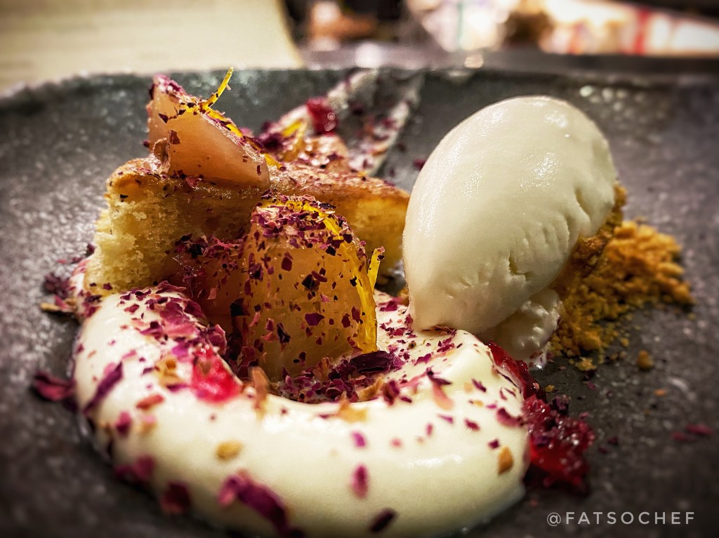 Medovik– The Medovik is a popular honey cake in Russia. It’s tastes rather much like pound cake to me. The honey part didn’t really stand out but the subtle sweetness went very well with the cold sour cream and yogurt sorbet. Didn’t care so much for the blood orange cubes but those rose crystal sprinkles were a nice touch.