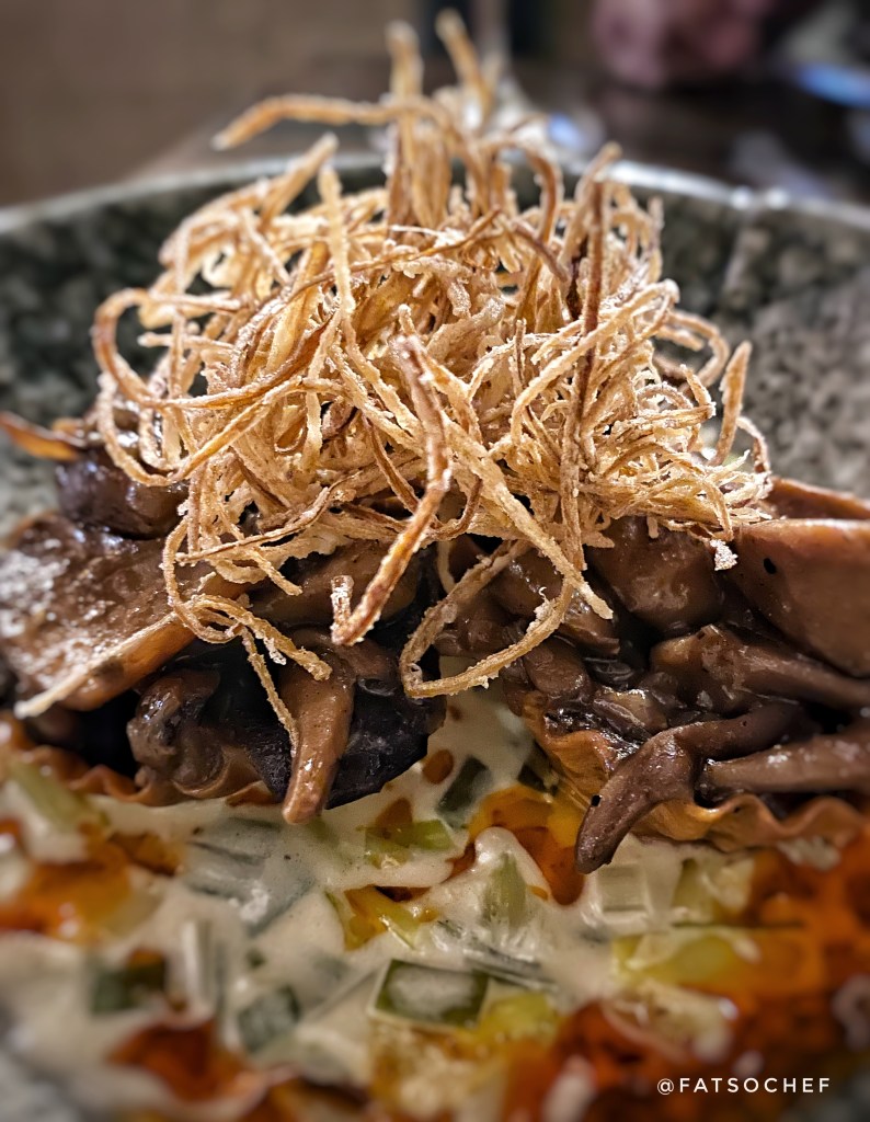 The last time I had escargot was before Covid-19 struck. So picking this next dish was a no-brainer. Black Truffle Escargots got’em little snails cooked in a rich brown butter truffle sauce. Like the Forest Mushrooms, a pile of crispies (this time, potato) was set over the shelled escargots. Kudos! Cuz frankly… who’s got time for slippery shells and tiny forks and the world’s most awkward tongs! Amongst the snails, you’ll find pieces of bacon adding bite and saltiness. The snails were a good size and every plump morsel oozed flavor from the creamy brown sauce. While the potato crisps added bite to the whole experience, I thought it was a tad overwhelming for the already very full-bodied dish. I felt they were a little greasy too. So that didn’t help. Still… I get where those potato crisps were heading but perhaps less is more?