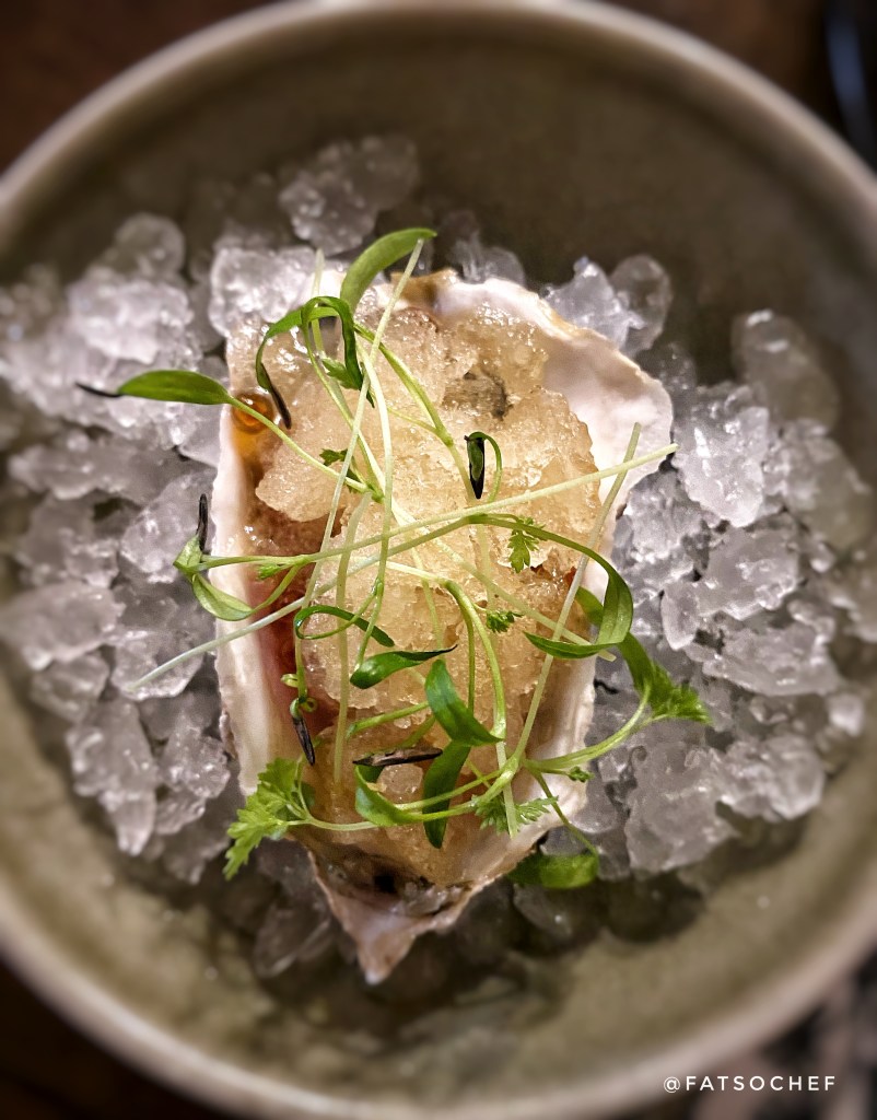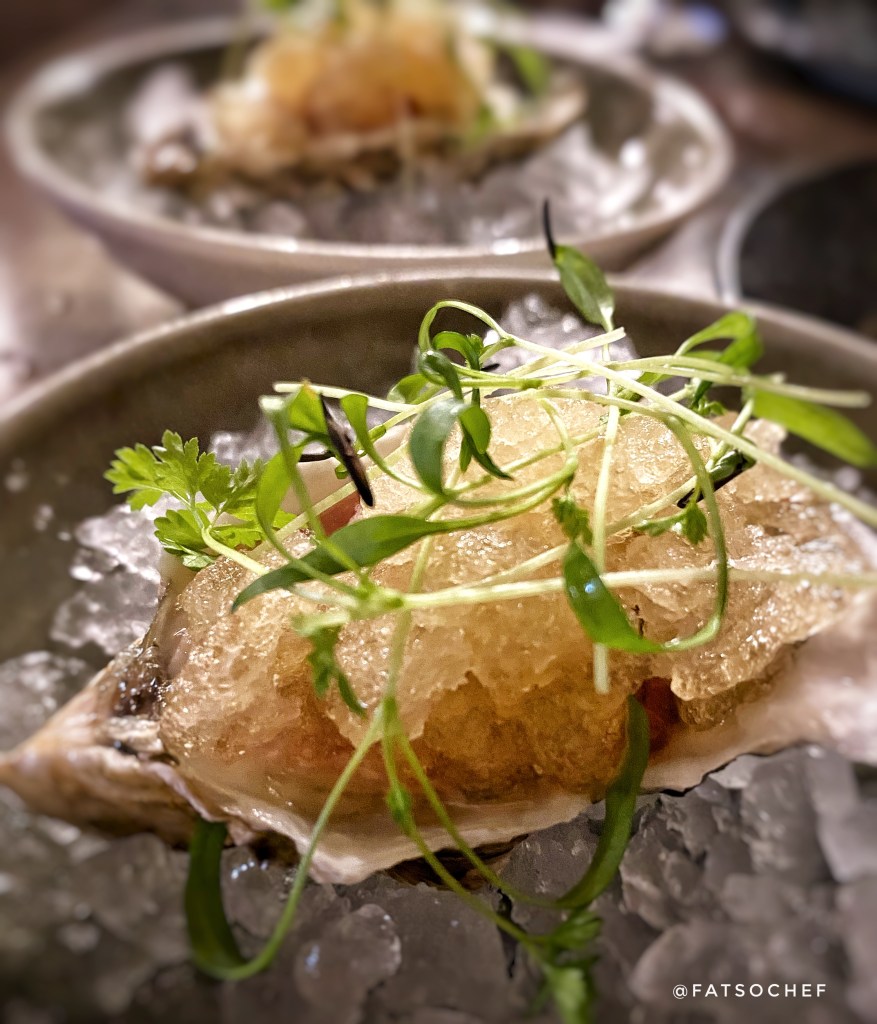 Though there was a happy hour promo on raw oysters, I couldn’t take my eyes off the Chef Special Oyster. This was presented in its shell atop a bed of crushed ice. It was dressed in vinaigrette and paired with ikura, aged parma ham and honey granita. My mouth waters as I type honey granita, recalling the icy cold sweet slush plopped over the oyster. I always love a dollop of sorbet in my oyster, so this was totally up my alley. It tasted good; the honey granite was just sweet enough; the vinaigrette was very subtle. And while the ikura added tiny salty bursts, I can’t help but wonder if they had forgotten the parma ham?