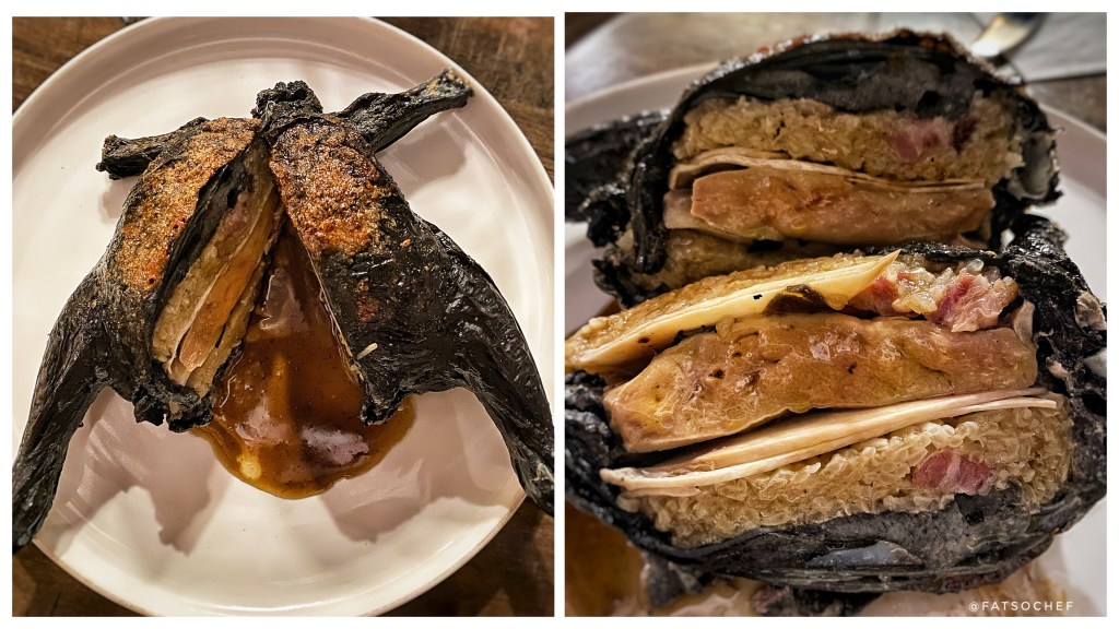 We didn’t need much convincing when it came to the main course. And it seemed the rest of the patrons that evening felt likewise. Stuffed Black Chickens flew out of the open kitchen one after another. And though the fanfare presentation was way less exciting than what I had expected and witnessed on social media, the final product did not disappoint. I’ve always eaten black chicken in Chinese tonic soups and a few times, simply salted and deep fried. Beurre’s version is far from anything I’ve experienced. The bird is stuffed with glutinous rice and foie gras, flavored with truffle, lard and its own chicken jus. The chicken is presented on a rack over a bed of aromatics which the server goes on to blaze with a blow torch. The smoke rises upwards, swathing the very charred chicken, very black chicken. The chicken returns to the kitchen where the chef halves it before it’s brought back to our table. And what laid before was the most impeccably stuffed bird I’ve laid eyes on! The black, scrawny de-boned chick had crisp skin and not a whole lotta meat. But whatever meat that’s on it was very tender, flavorsome and juicy. That was further enhanced with soft (but not mushy) savory glutinous rice and a princely slab of foie gras. Portion a bit of everything on your fork, followed by a good dip into the brown sauce, and take it all in in one mouthful. A mouthful indeed yet everything astoundingly works out as planned. The creaminess of the goose liver melts while the truffle flavors your mouth amidst the savory chicken and sauce, with the rice balancing everything out. Don’t be deceived by the size of the bird, this is a heavy dish; and unless you’re a super duper big eater, it feeds 2 adults substantially. Needless to say, I was as stuffed as that chicken when I was done!