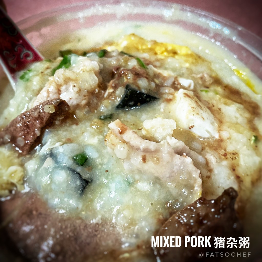 We ordered 4 different types of porridge and a portion of Chinese dough fritters to go. Century Egg porridge, Mixed Pork porridge, Shredded Chicken Porridge, and Li Wan Boat Porridge. All with a fresh egg broken in and extra add-on of salted egg. If you prefer silky smooth porridge, this isn’t it. Instead, it is dense and starchy, contradicting a review I read describing the porridge watery. I don’t like my porridge watery but this was way too thick and heavy. Every bowl is accompanied by a good amount of ingredients, but that’s about it. The porridge was lacking flavor, flavor and flavor! Almost as if they forgot the salt. For me, this has been disappointing, based on the chef’s background and history tied to one of the most famous porridge stalls in Singapore.
