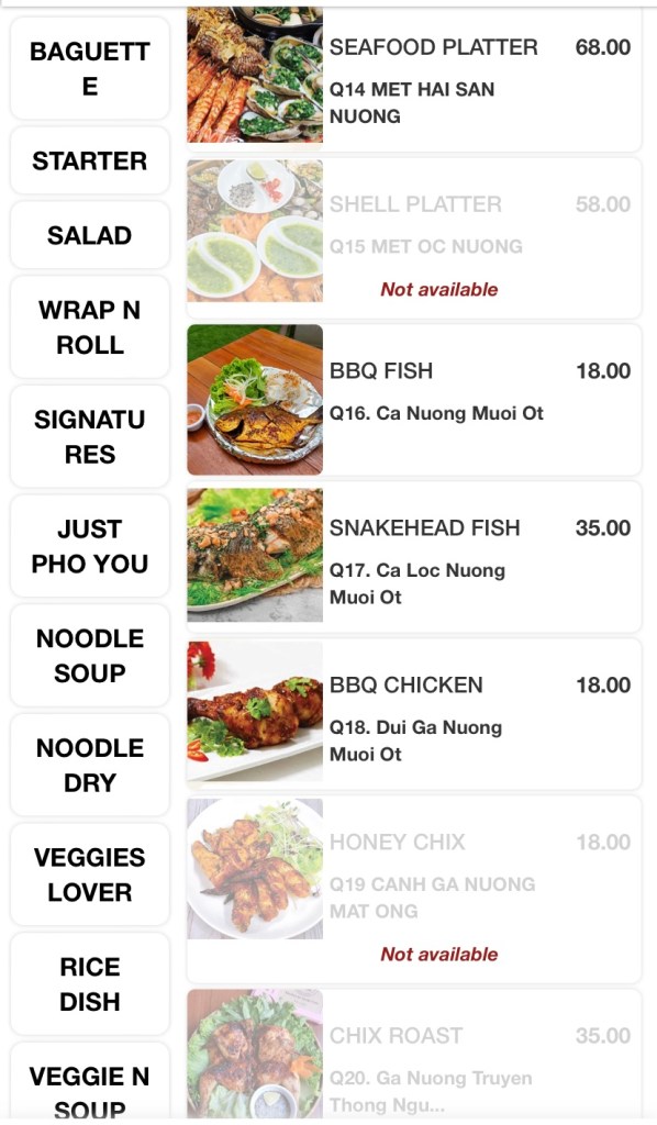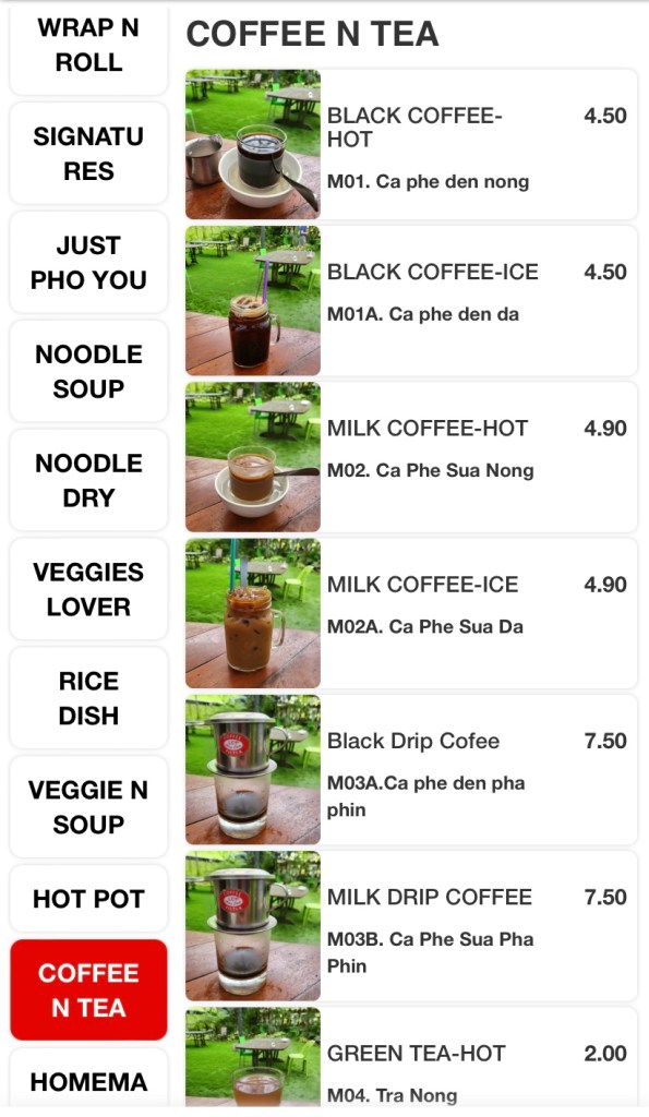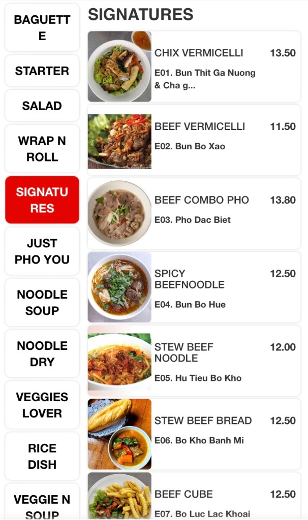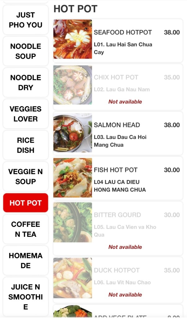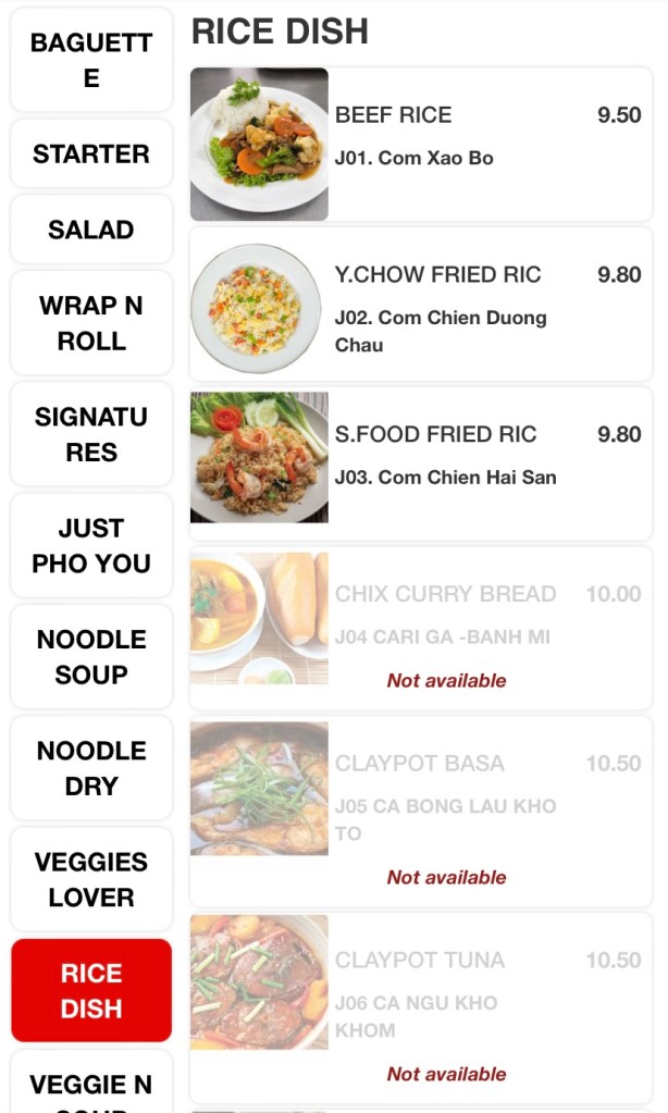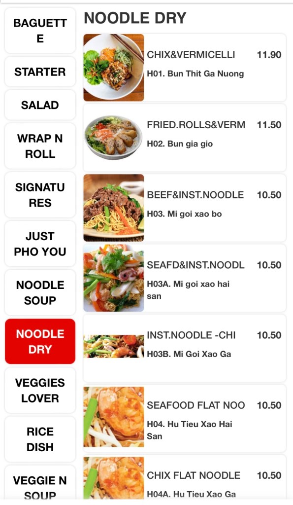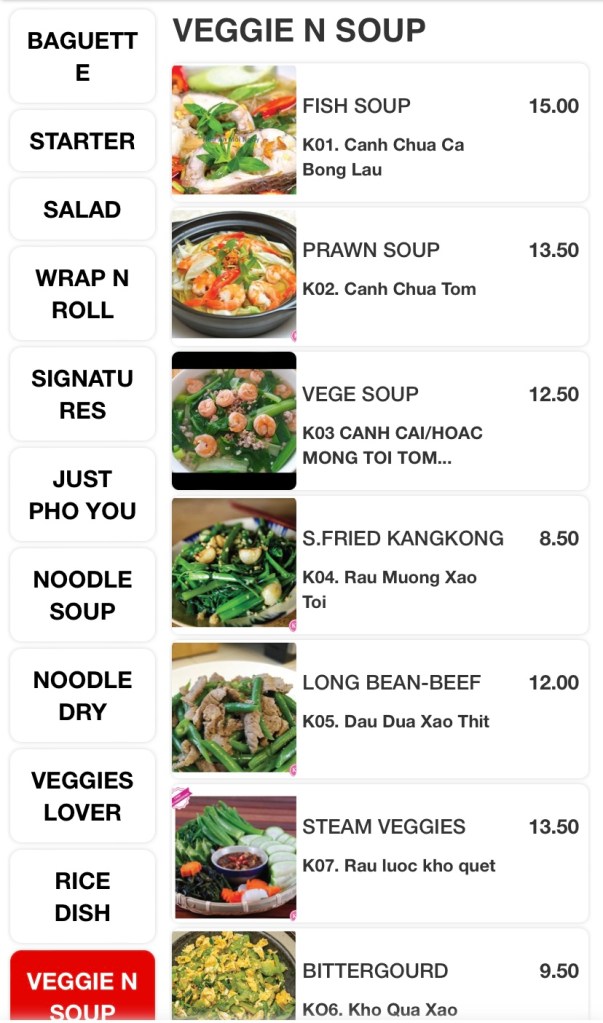 The huge menu includes Vietnamese classics like Banh-mi, Pho, salads, wraps, rolls, an array of stir-fries, bbq and hotpot items. The variety excites me, but the ordering system, not so much! Scan and order via a QR code and pay in advance at the cashier before they send your order to the kitchen. All good until you need to order one drink, or one bowl of rice during your meal and a quick wave to the waitress won’t do the job. So order everything you need, if you don’t wish to get off your seat during your meal!