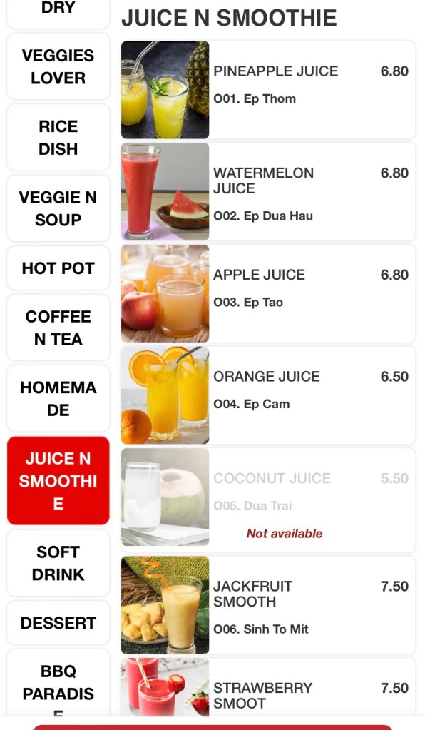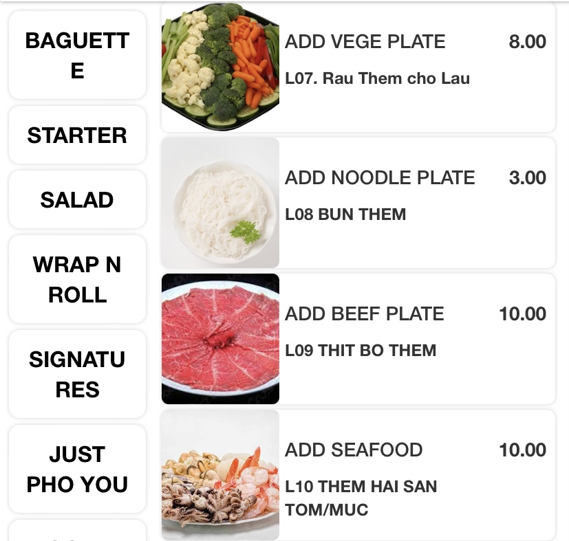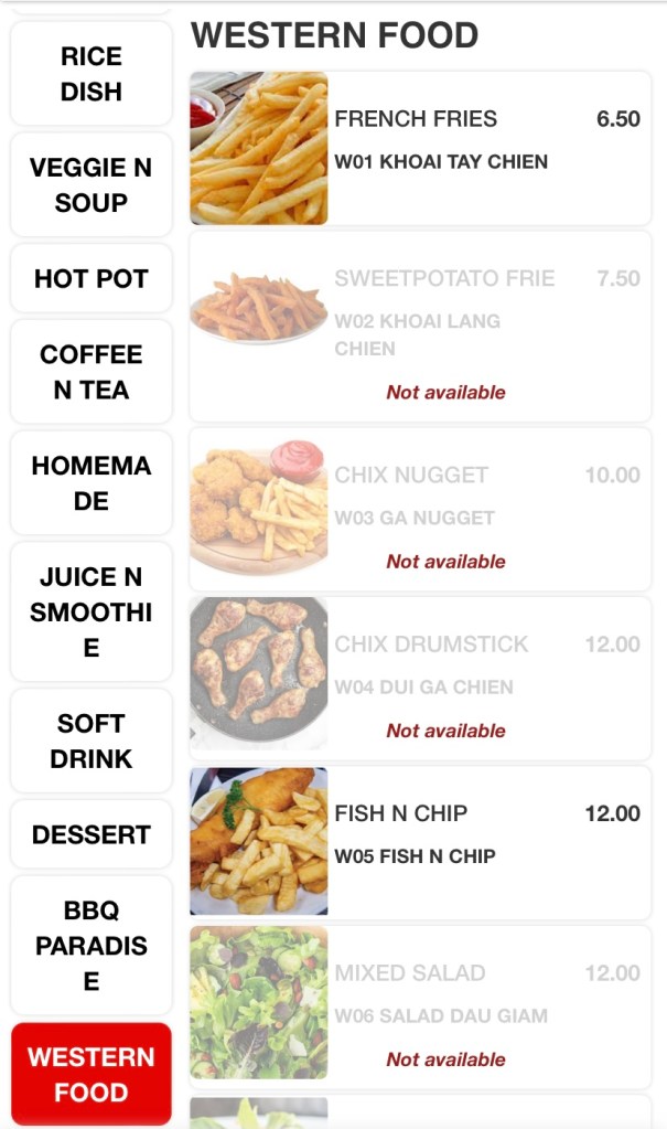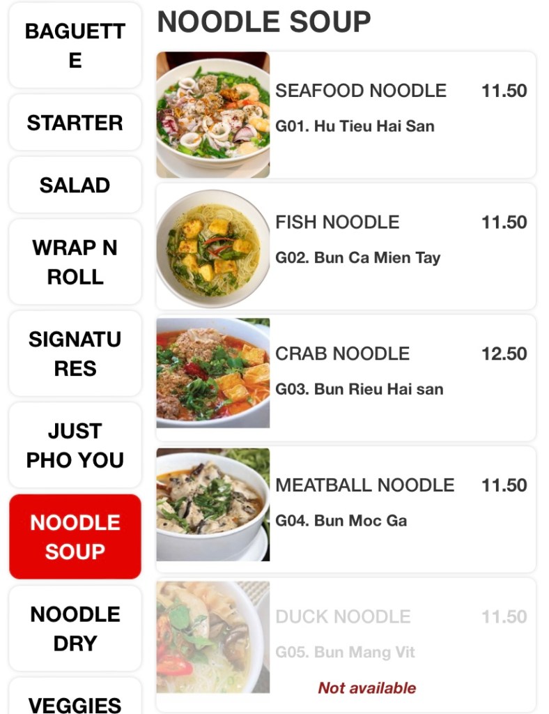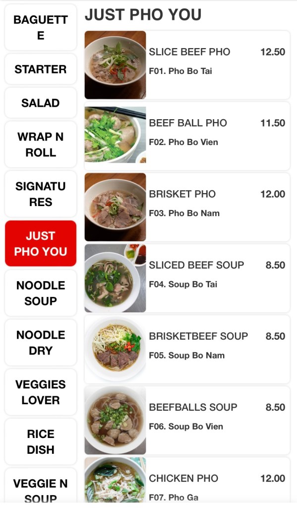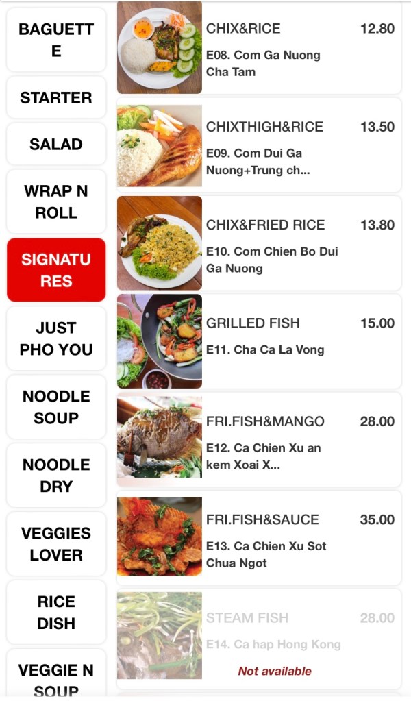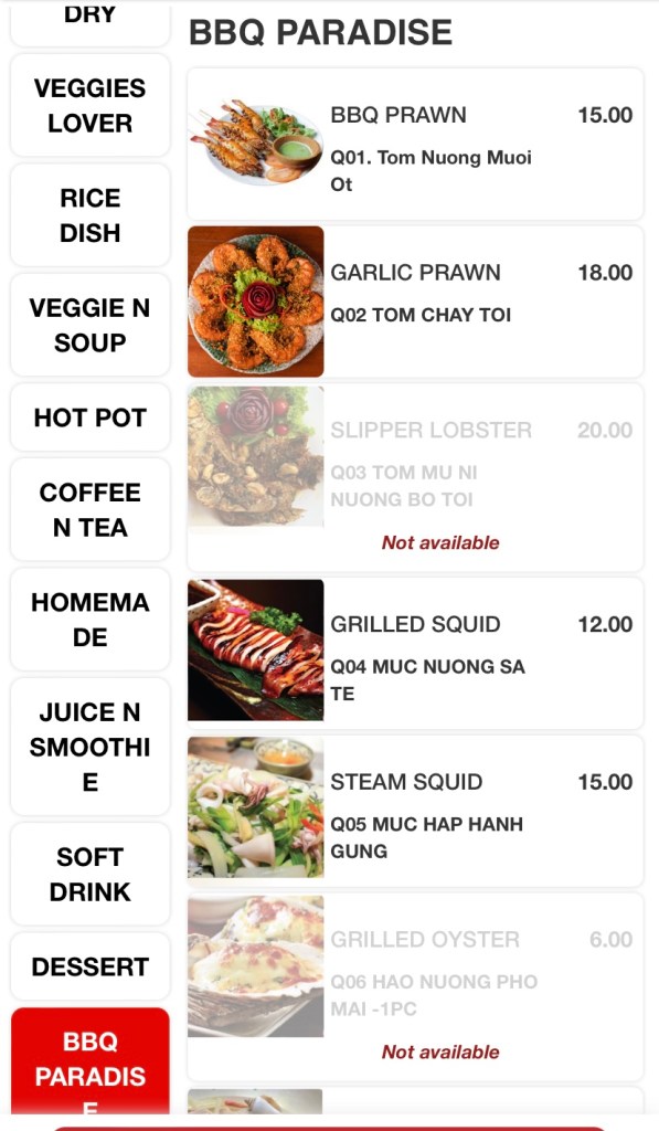 The huge menu includes Vietnamese classics like Banh-mi, Pho, salads, wraps, rolls, an array of stir-fries, bbq and hotpot items. The variety excites me, but the ordering system, not so much! Scan and order via a QR code and pay in advance at the cashier before they send your order to the kitchen. All good until you need to order one drink, or one bowl of rice during your meal and a quick wave to the waitress won’t do the job. So order everything you need, if you don’t wish to get off your seat during your meal!