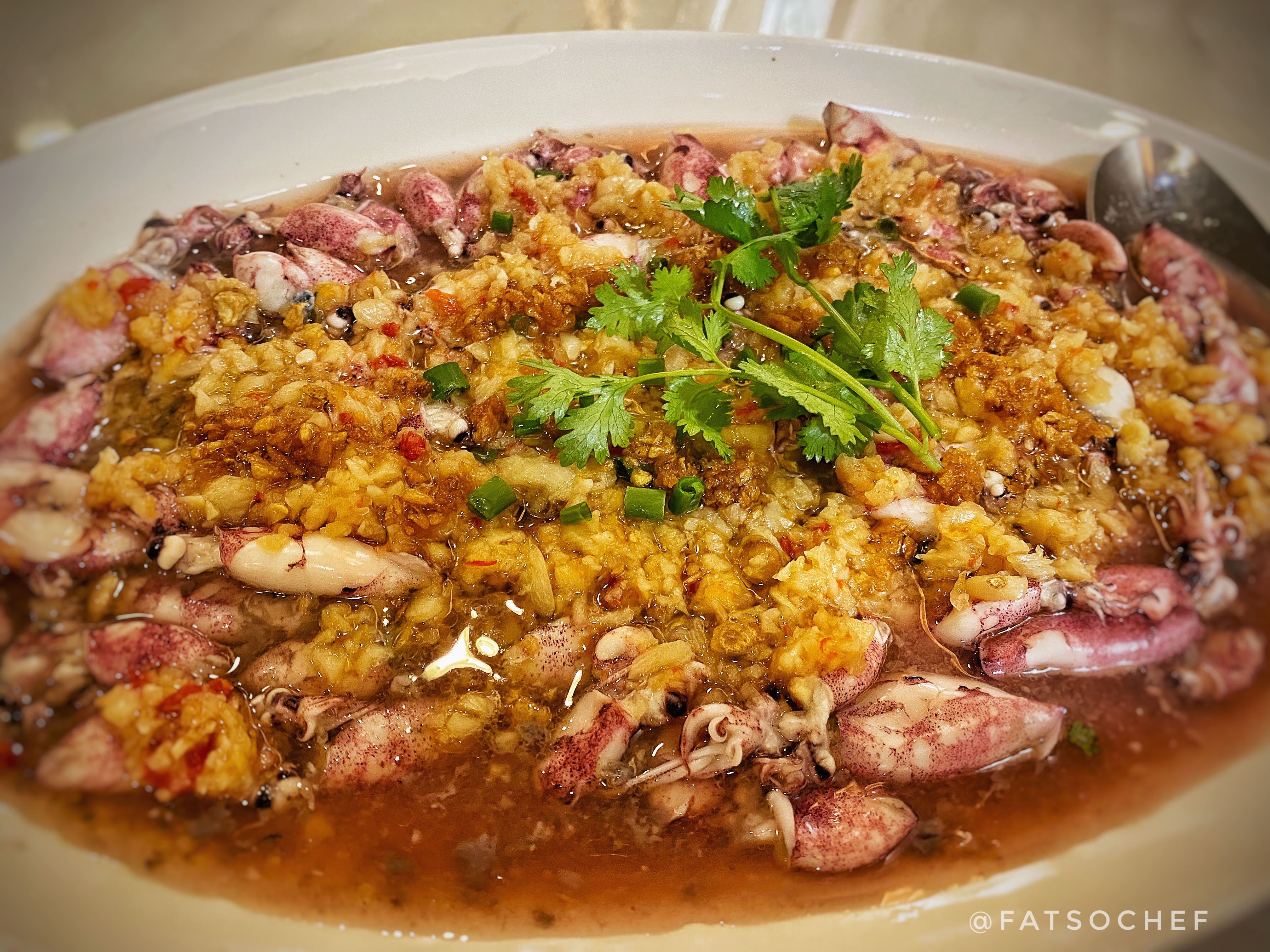 I always like my Baby Squid deep fried to a crisp; but this time, seeing how fresh they looked, I ordered them steamed with garlic. They rained garlic on the baby squids, yielding a sweet, earthy sauce we literally drank off our spoons. The squids were cooked just done, so, not the teeniest bit chewy. For sotong fans, this Squid Game is on!