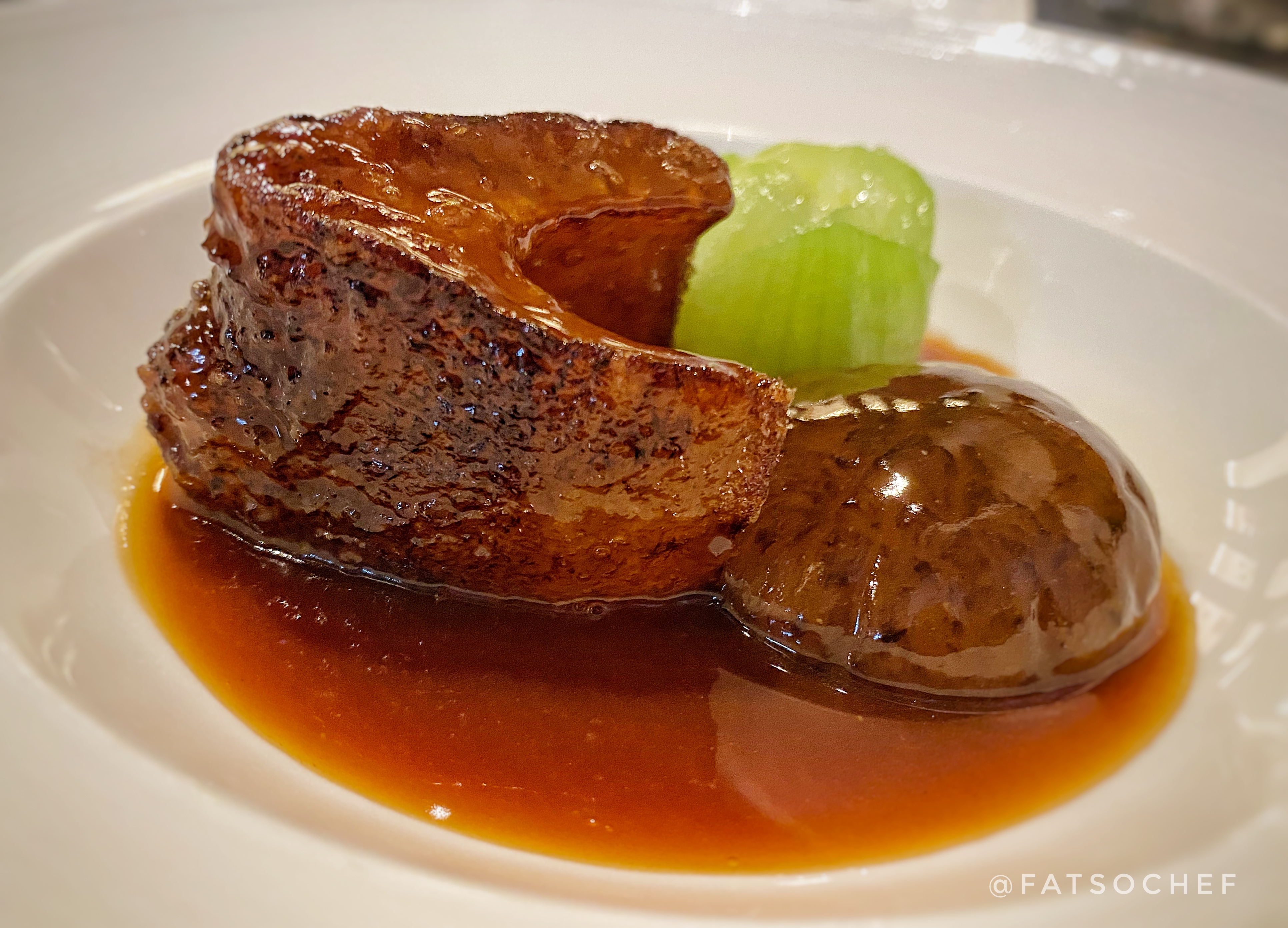 Deep Fried Sea Cucumber with Superior Abalone Sauce ~ The star dish of the evening must be the Fried Sea Cucumber served with a velvety abalone sauce. This dish has been mentioned in every social media platform, and I really wanted to see what all the hoopla was about! I’ve had my fair share of sea cucumber but deep fried was a first. And though I thought it strange at the beginning, I’m not sure I’d go back to any regular sea cucumber again!! What a delicious way to prepare this delicacy. Contrary to its name, sea cucumber is an animal (Echinoderm to be exact) and not a vegetable! It is generally bland and will absorb whatever flavor you throw at it like a sponge. By frying it in oil, it ingested a warm wok hei within its thick lining, then it further soaks up the rich abalone sauce that’s poured over it. Every bite thereafter was a combination of sweet savory gelatinous goodness; with the texture, the juices, and the rich smokey flavor coming together tastefully. A must order!