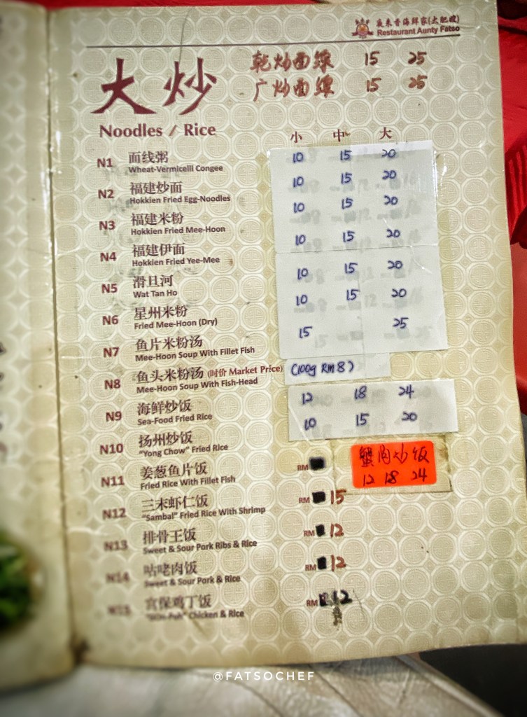 Restaurant Aunty Fatso, also known as Madame Fatso Restaurant (no relations to Fatsochef!) has low social media exposure. It is located away from bustling Jonker Street and is frequented by mostly locals. I was drawn to the few but positive postings of her famous Cheese Mee-Hoon and was glad to find time to visit when our city tour ended earlier than planned one evening.