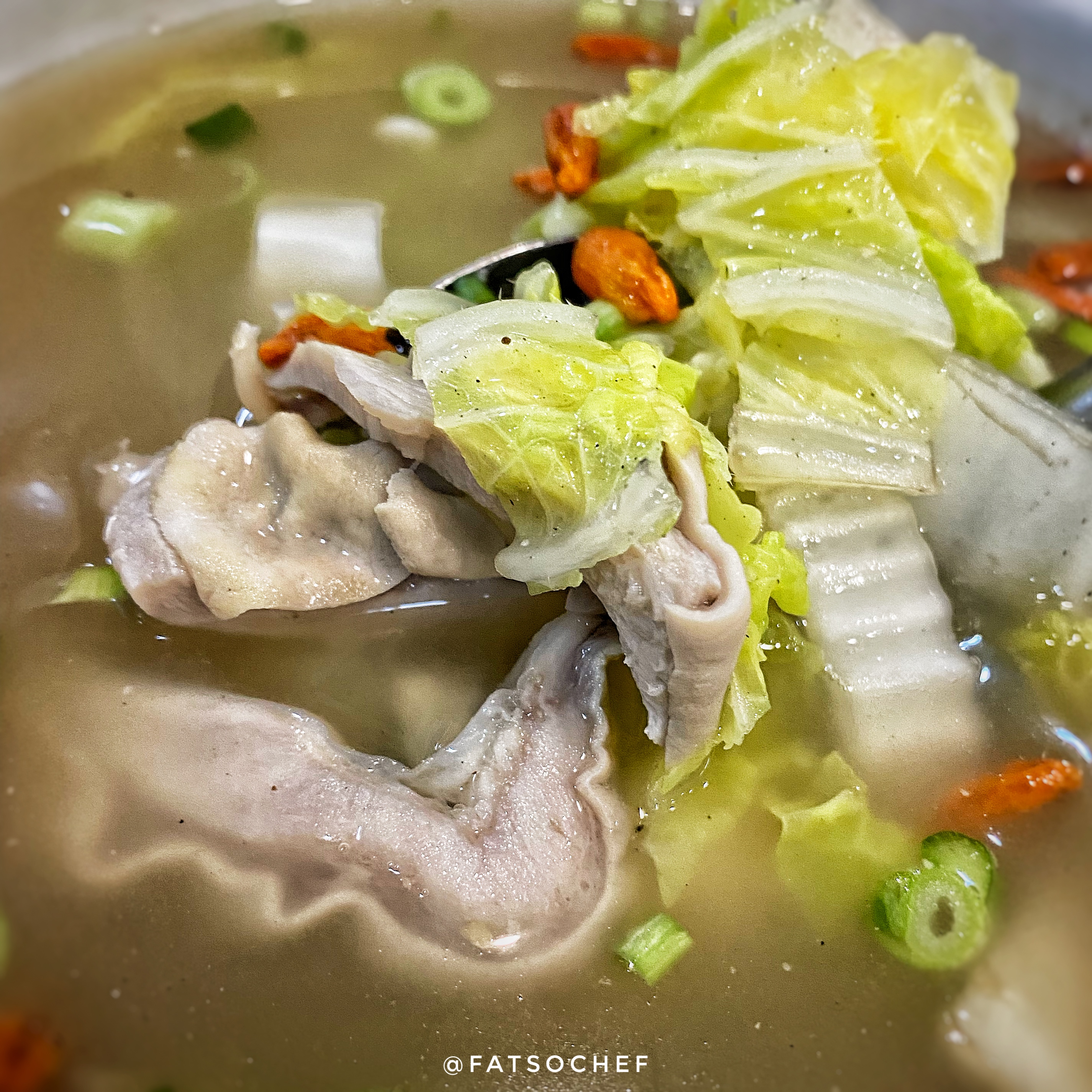 Pepper Zhu Du Soup 胡椒猪肚汤– Pig’s Stomach simmered in a white peppery broth sweetened with Chinese wong bak cabbage and goji berries. What a tummy warming elixir! The pig stomach slices were very well cleaned; cooked just tender, so you can chew through with ease. The soup was strong but not overpowering in spicy white peppercorns. The cabbage added sweetness and cubes of tofu added soft bites in between sips. Clean, sharp and robust. And so generous with the ingredients, everyone had seconds!