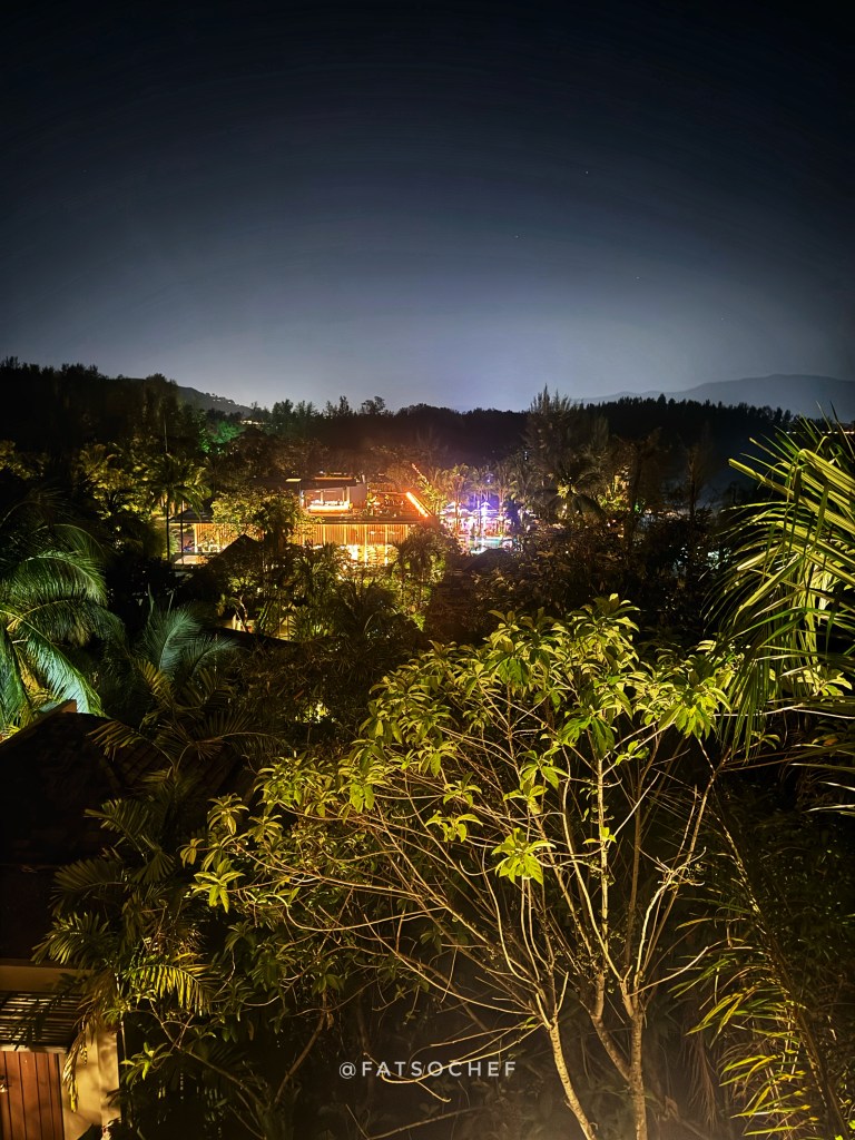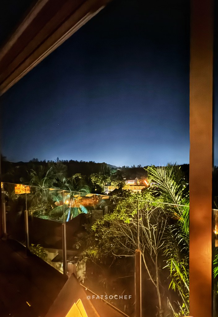 We were led to one of the coveted seats on the veranda overlooking what would have been the sea if it wasn’t stark dark! However, the twinkling soft lights from the resort villas from afar made up for the missing sea view… and made it very pretty still.