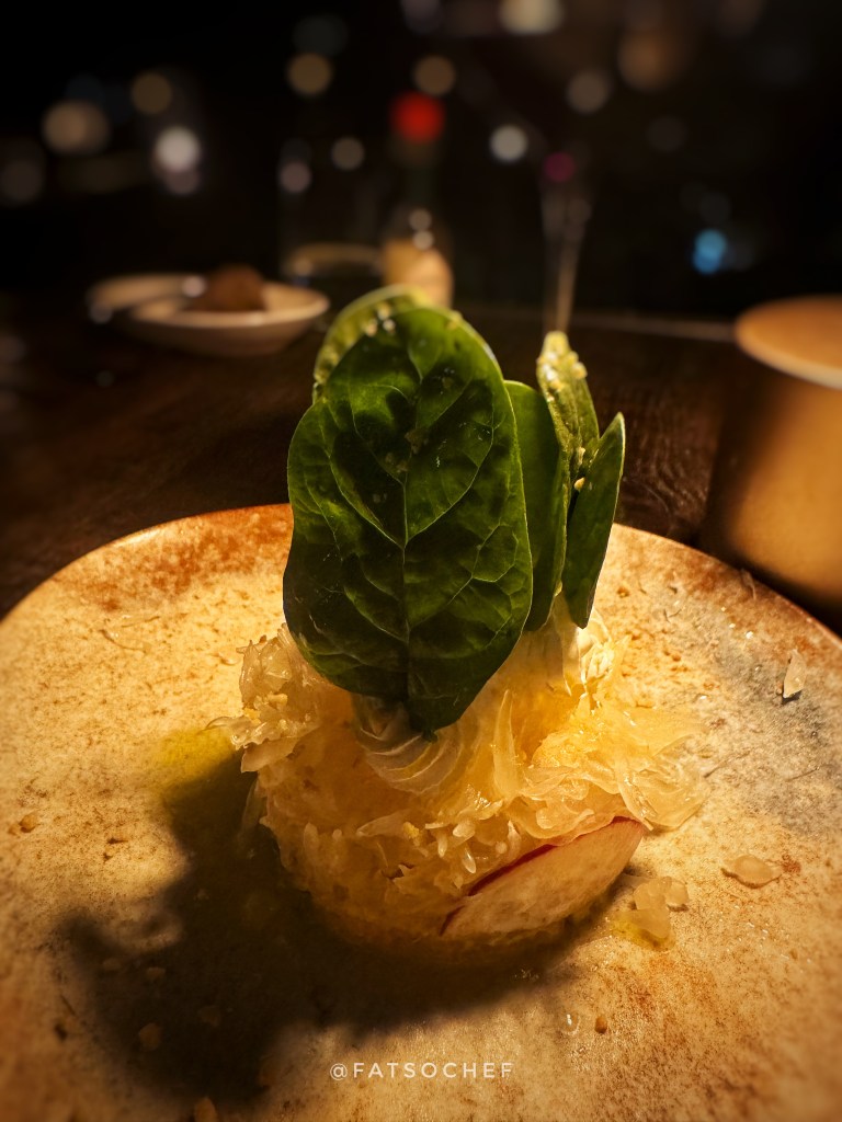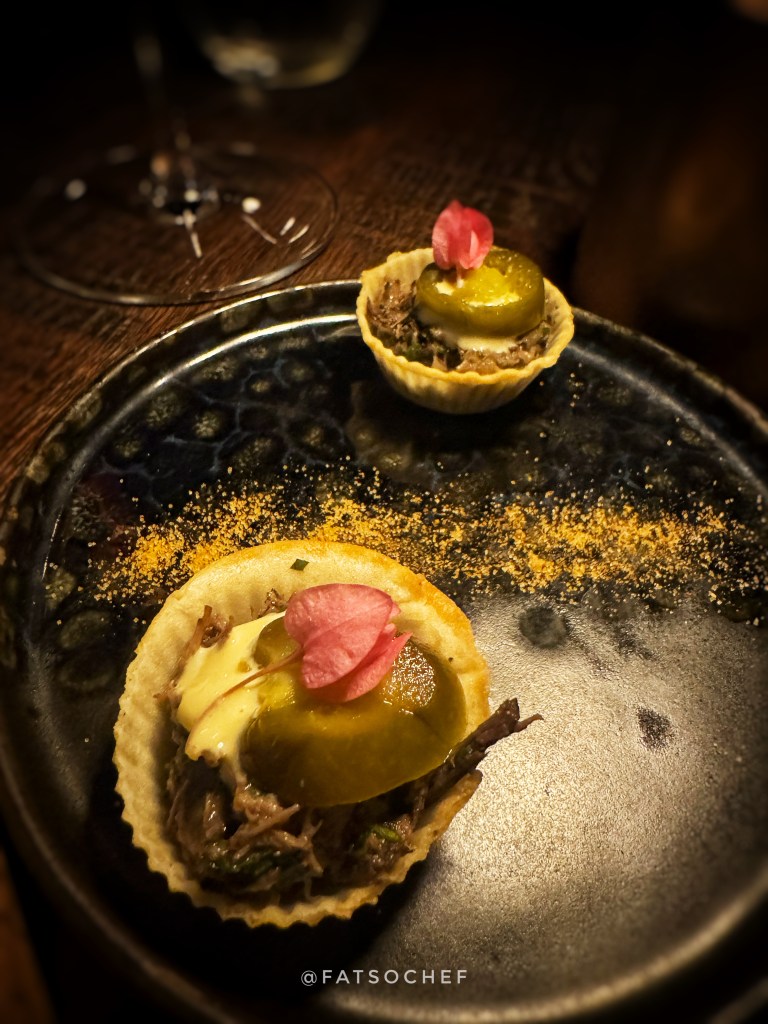 The amuse bouche was a little tart filled with warm shredded meat and a little jalapeño with a not-so-little kick! A tasty mouthful to whet the appetite and begin the meal!