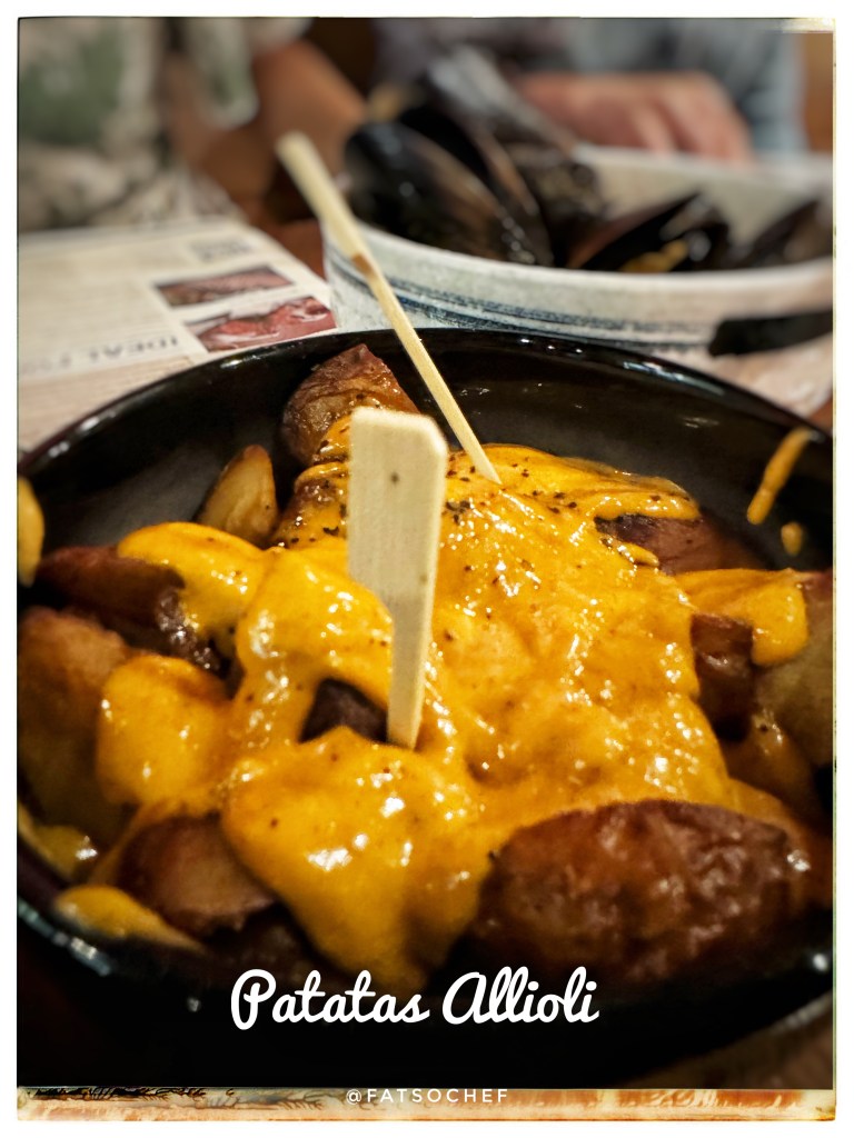 It takes a lot of determination not to order the Spanish classic, Patatas! And evidently, we left determination at home this evening, and boy did we luck out! Those fine potatoes were roasted crisp on the outside while retaining much creamy fluffiness within. That allioli sauce that blanketed the spuds was extra tantalizing! I’m suspecting there’s more than just garlic in there! It’s one of those sauces you’d put on everything! Like, EEE-VER-RYYYY-THING!!