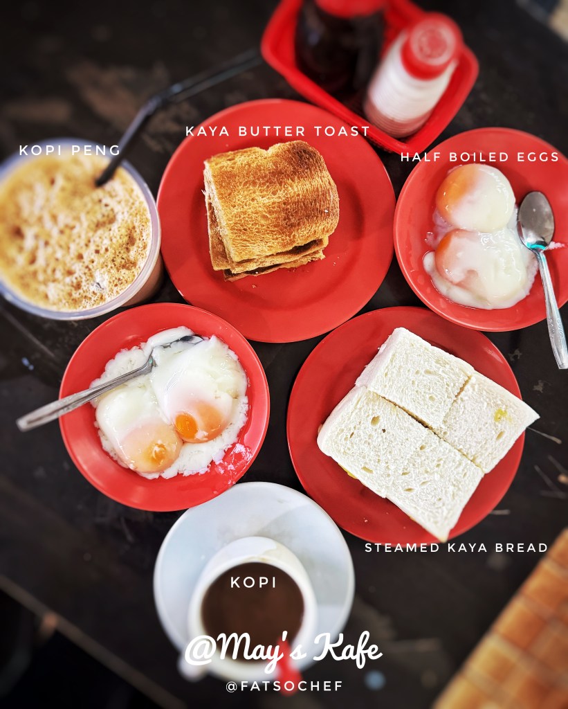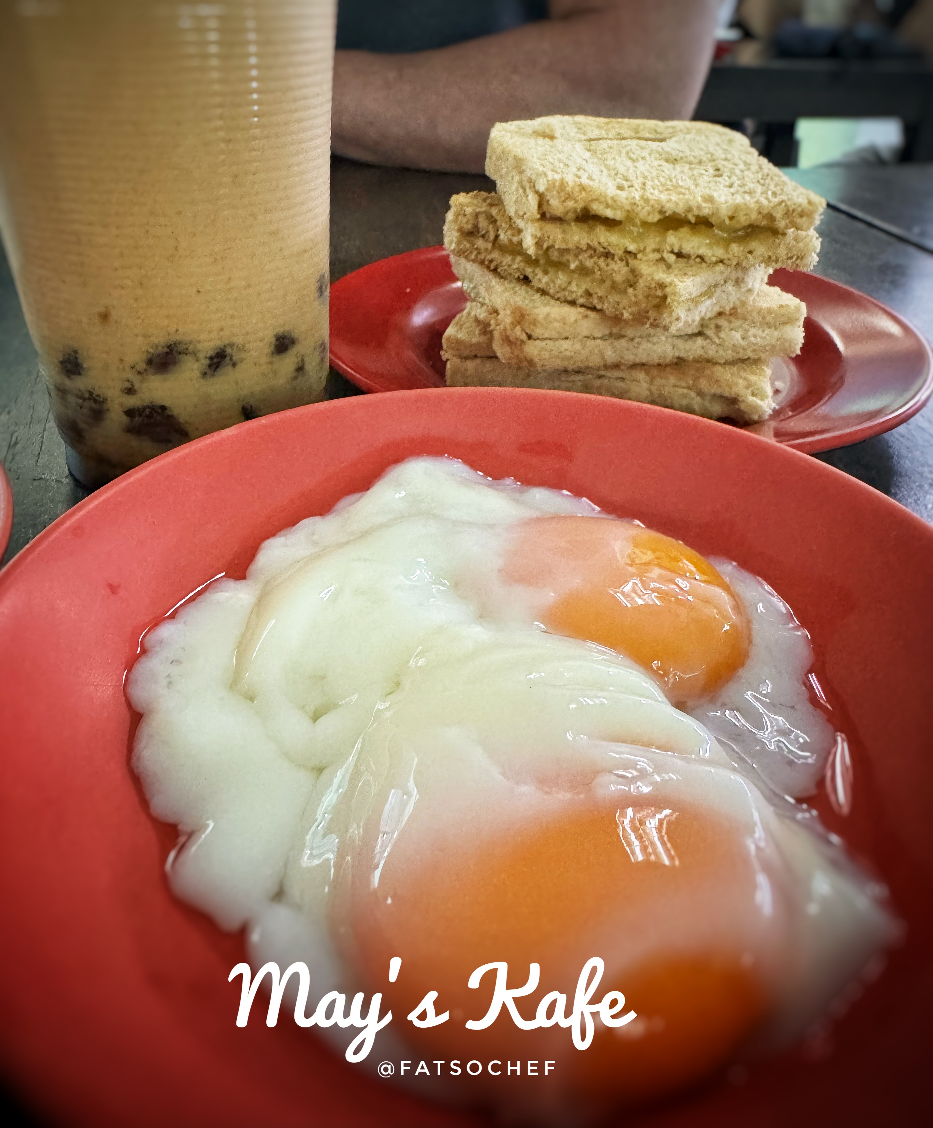 May’s Kafe is a medium sized coffee shop located at the basement atrium of an old shopping complex. They sell a wide selection of hot and cold coffees, toasts and sandwiches, as well as fast local meals like Mee Siam, Laksa and Nasi Lemak. The open kitchen is efficient and services a full house without blinking on a daily basis.