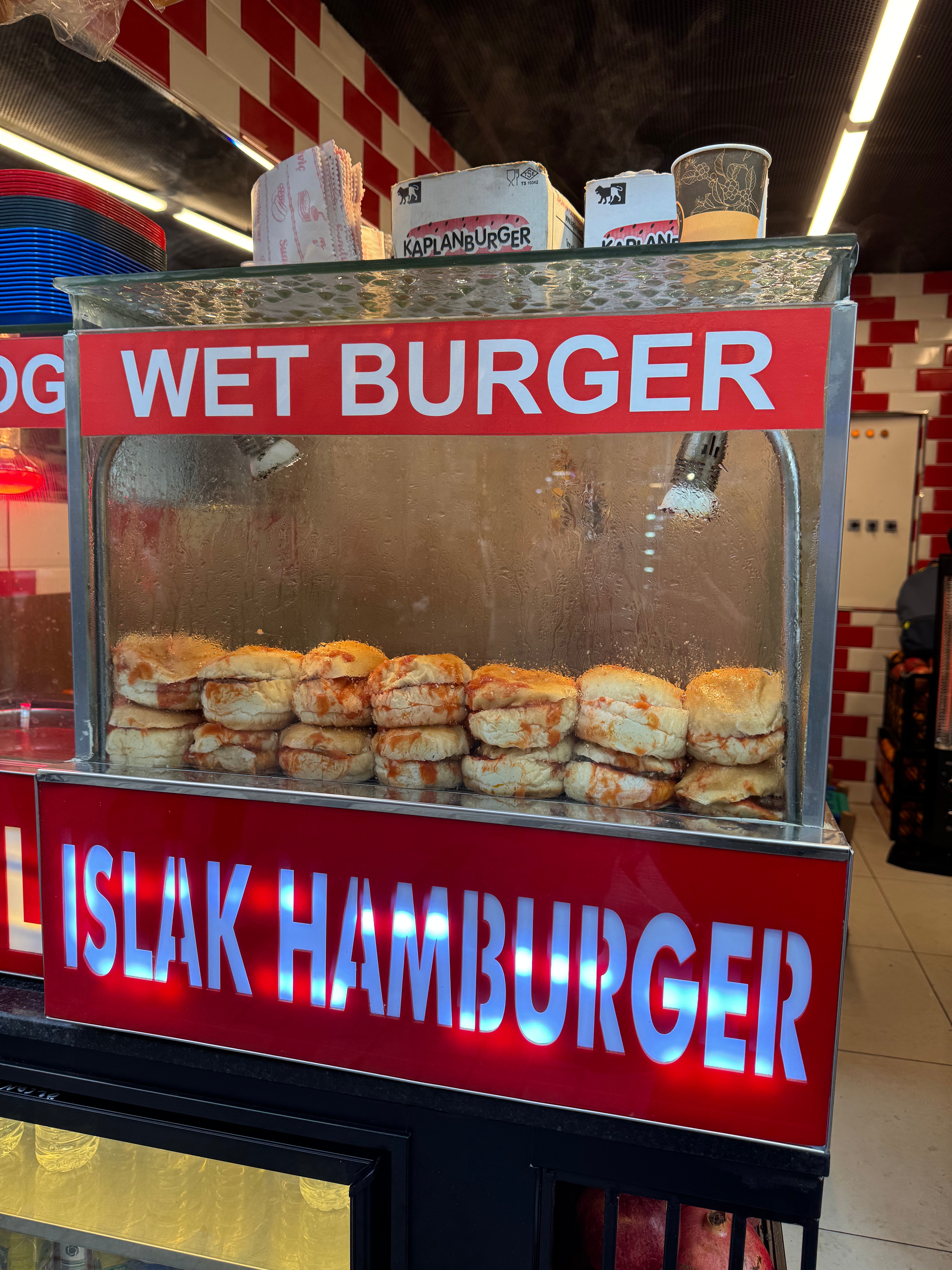 If you spot a Wet Burger kiosk, give it a shot!! It’s basically a burger that’s kept hot in a steamer box. And thus the wetness! Unconventional but not un-edible! Just kinda soggy!!